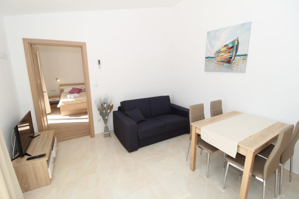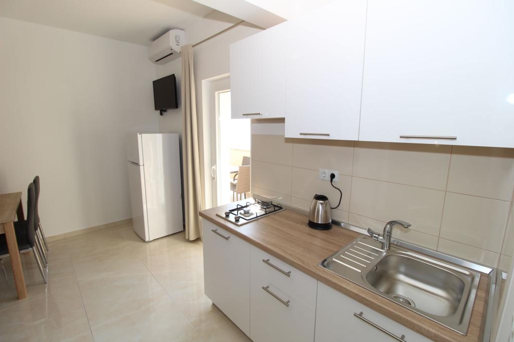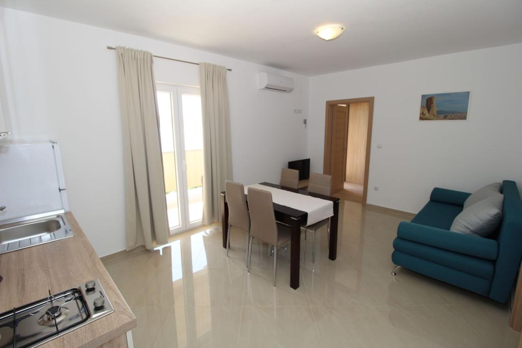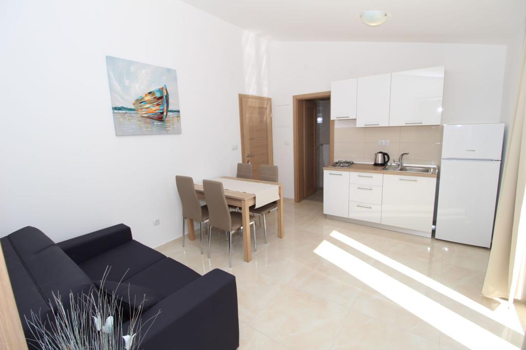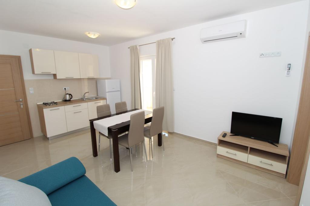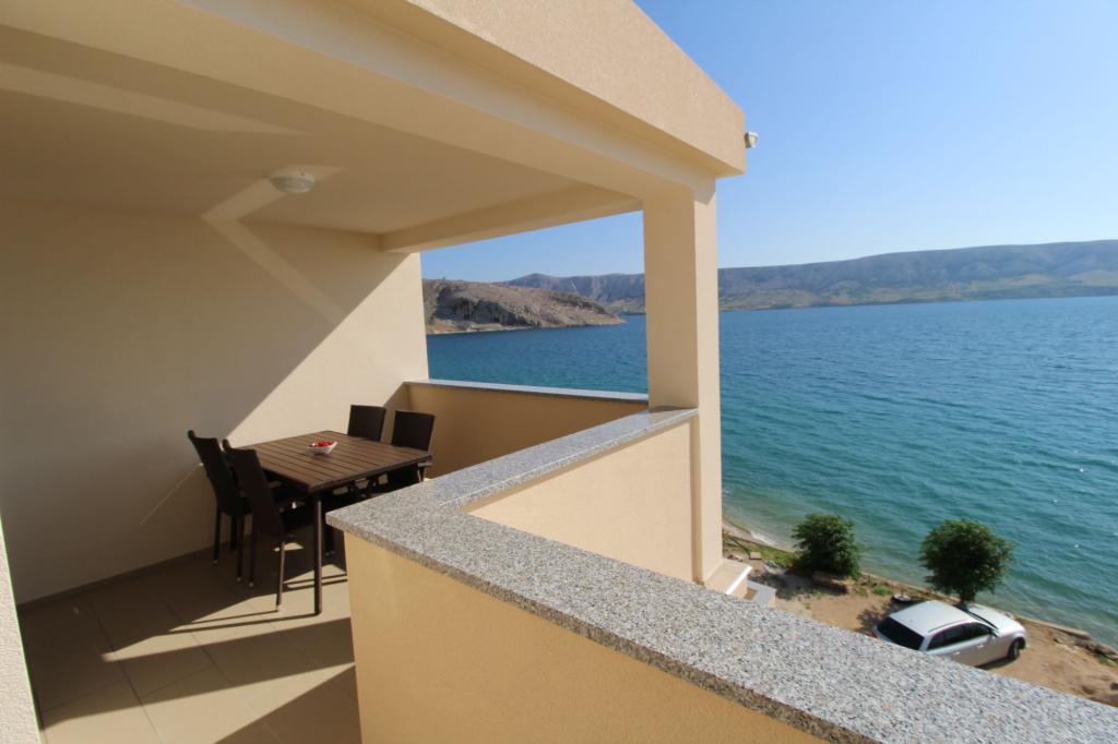 Newly renovated apartments in the first row to the sea in the quiet fishing village of Metajna on the island of Pag. The facility is located a 3-minute walk to the beach, a 5-minute walk to the center of the town where there are restaurants, shops, and a bakery. The distance to the famous Ručica beach is a 20-minute walk, and to the Beriknica beach a 30-minute walk, to which the famous Life on Mars trail leads. All accommodation units have air conditioning, TV, free internet access and secured parking. On the common terrace there is a barbecue at guests' disposal.