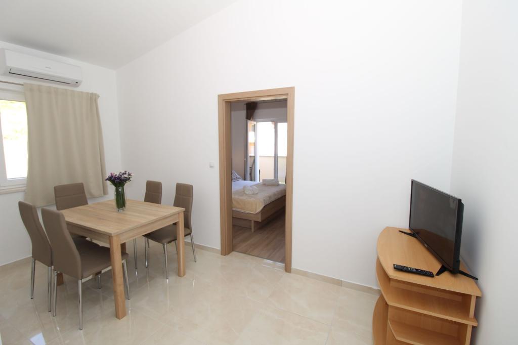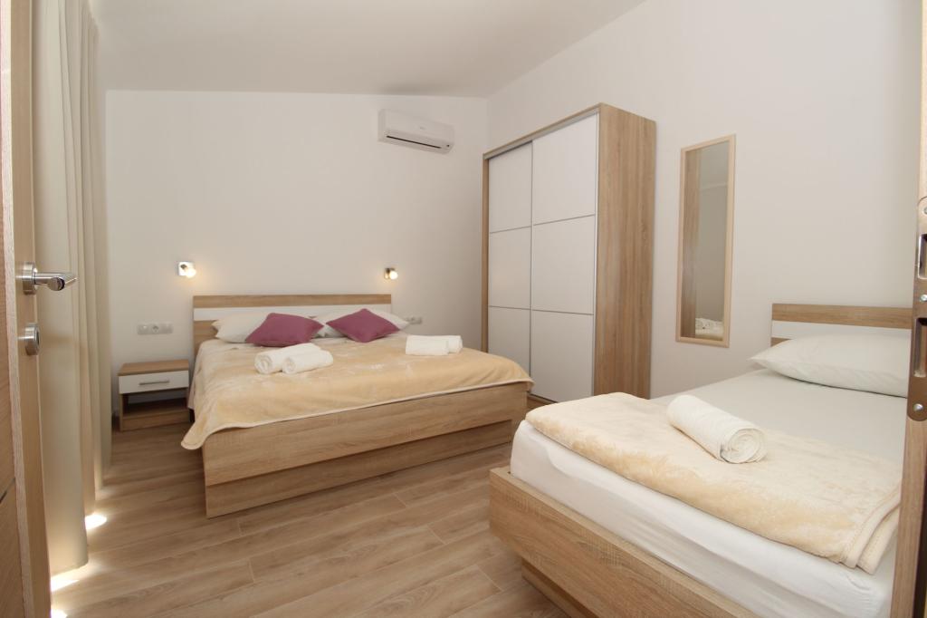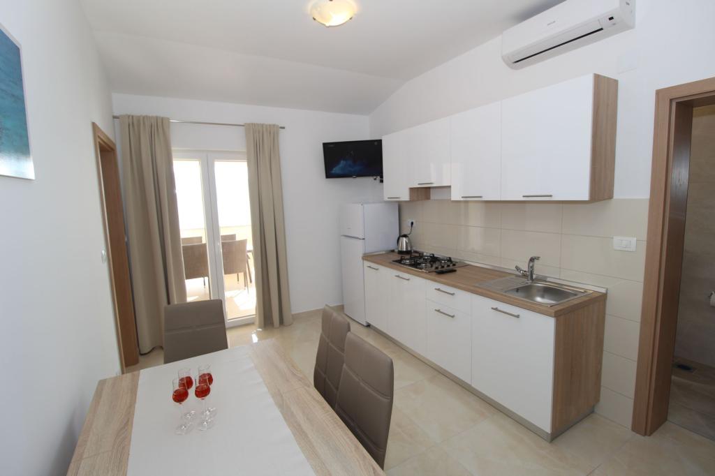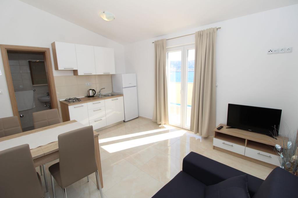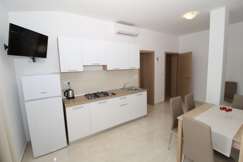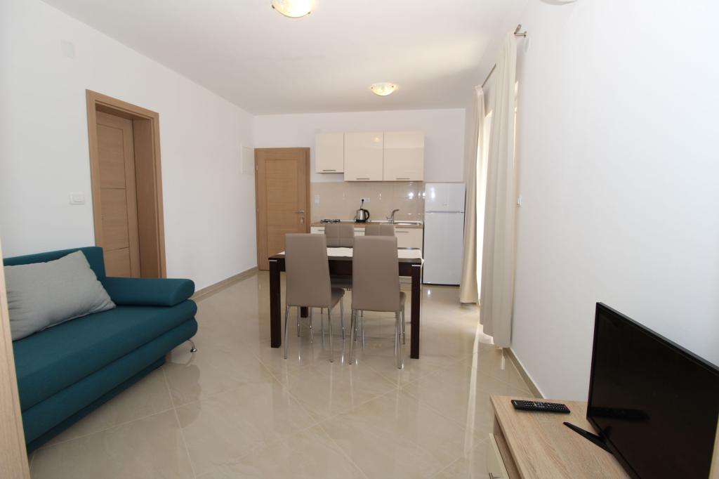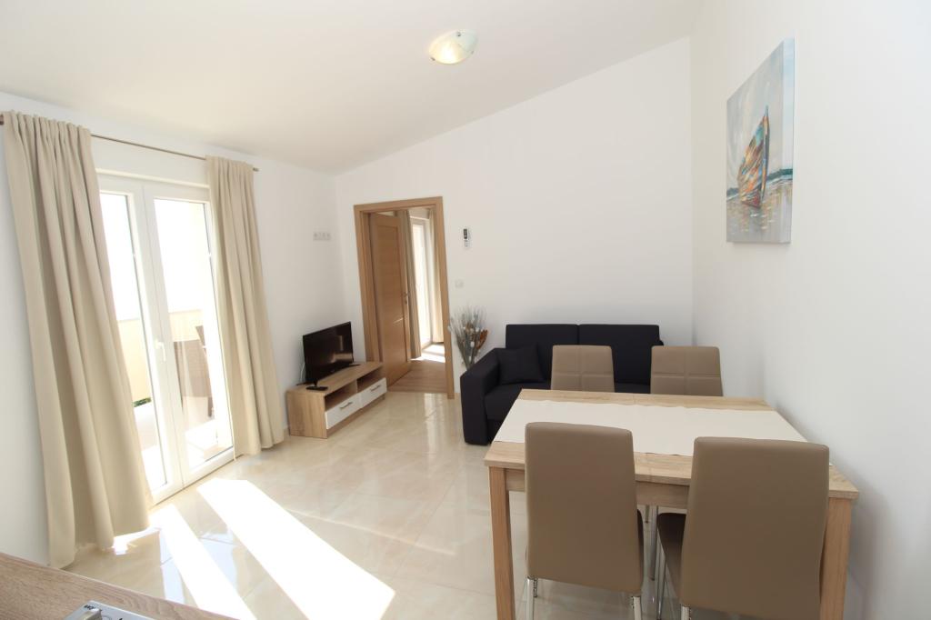 Newly renovated apartments in the first row to the sea in the quiet fishing village of Metajna on the island of Pag. The facility is located a 3-minute walk to the beach, a 5-minute walk to the center of the town where there are restaurants, shops, and a bakery. The distance to the famous Ručica beach is a 20-minute walk, and to the Beriknica beach a 30-minute walk, to which the famous Life on Mars trail leads. All accommodation units have air conditioning, TV, free internet access and secured parking. On the common terrace there is a barbecue at guests' disposal.
