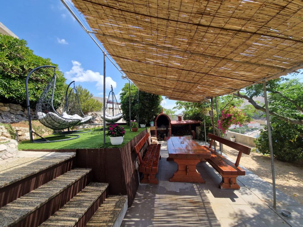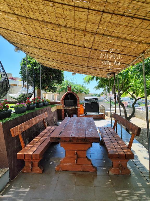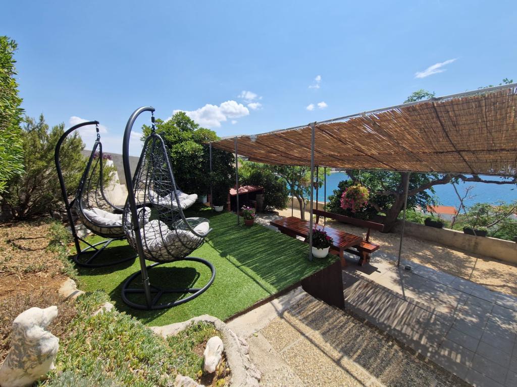 Apartments Bingula are located on a small hill called Glavica, 150 m away from the sea and the center of Metajna. The proximity of the center and the sea allows our guests to be in the middle of events in a short time, and also to retreat to the peace that our site offers. For our guests there are several terraces with common grill, and for the youngest guests we have a small playground so that the parents can relax unlimitedly. All apartments are fully and modernly equipped: kitchen with living room, bathroom with toilet, air conditioning, SAT TV, WLAN, balcony with sea view .... For those who opt for halfboard we offer Croatian specialties and international specialties with Croatian gingerbread. If you miss something, there are always your hosts who will be happy to come and meet you. We are looking forward to your arrival, Family Bingula