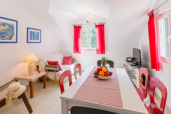 Newly built and modern apartment in a quiet bay on the south-west of the island. It is located close to the sea in a pine forest, far from the island 15-minute walk.