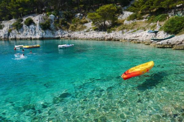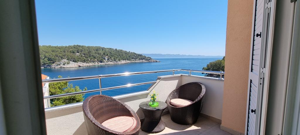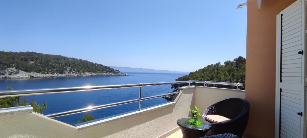 Our newly built house is located in the first row to the sea in the small sheltered bay of Osibova on the north-western side of Brac. The facility has five completely and modernly furnished apartments. The beach is only about 20 meters away. For your pet, we have a covered parking space not far from the building. If you come by boat, we have secured a place for your trailer. Of course we also have a barbecue. Each terrace or balcony is also furnished. . A 30-minute easy walk takes you to the small town of Milna, where you can find a number of nice restaurants, cafe bars, promenades and the possibility of buying groceries.
