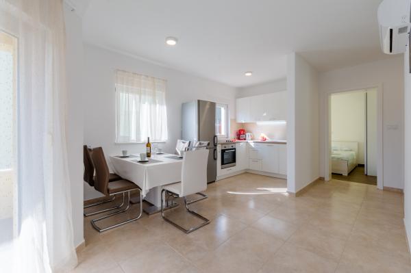 Great location, great apartment, great terrace and in a quiet location. Close to the sea where there is no crowd but there is clean sea. The first bar or shop is 3 km away. You can rest lightly or actively. There are many macadam paths for walking or cycling. And be sure to visit Kapetanija Lozje tavern for a great steak. We recommend.