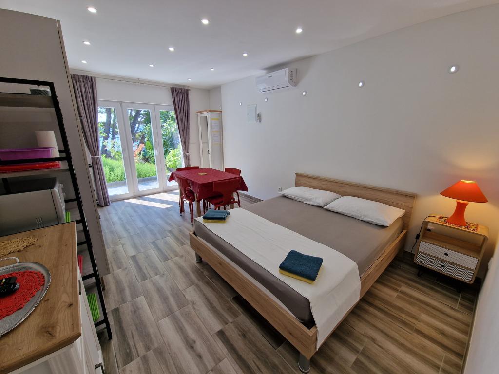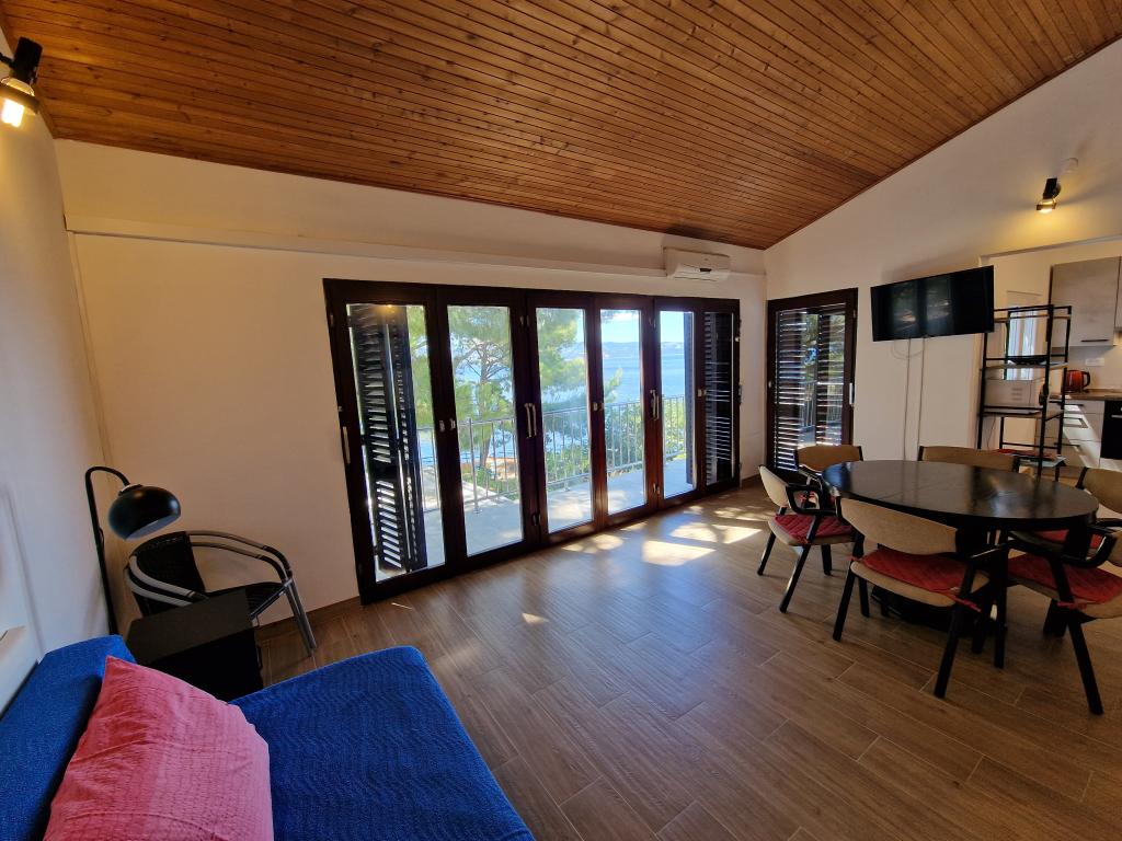Only 50 m from the beautiful pebble beach, first row to the sea. A1- (51640) The apartment can accommodate 6 guests. The beds are arranged in 3 bedrooms, within 56 m2. Terrace of 18 m2. Sea view from the 350 m2 forest. Two bathrooms. Barbecue is shared. There is a dishwasher in the kitchen. A2- (51641) The apartment can accommodate 5 guests. The beds are arranged in 2 bedrooms, and in the dining room, within 73 m2. Balcony of 17 m2 with sea view. Barbecue is shared. There is a washing machine and dishwasher in the apartment. A3- (64424) The apartment has 2 beds in the living room with kitchen and 2 in the bedroom. Living room with kitchen is 22 m2, bedroom 7 m2, bathroom 5 m2. There is a dishwasher in the kitchen. Barbecue is shared. Large terrace (35 m2) with sea view.