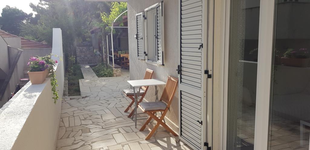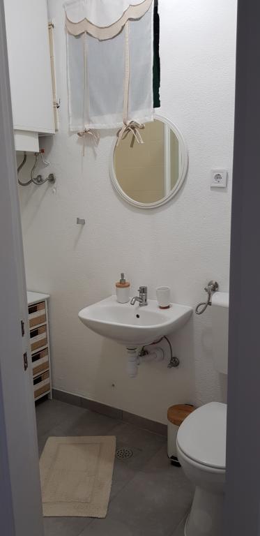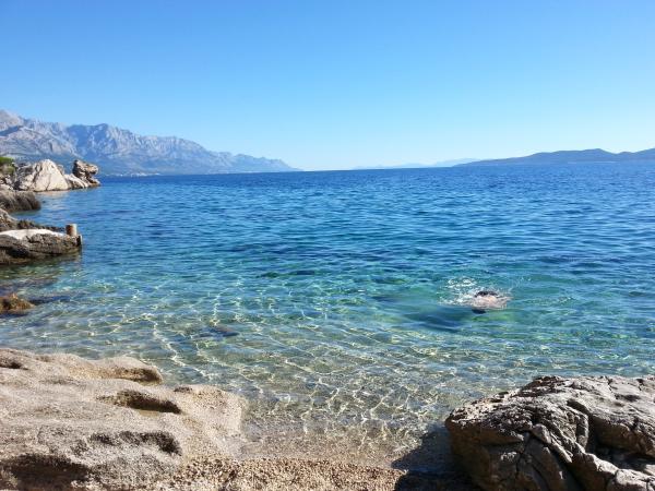 The house is located in Mimice behind Omis. There are three apartments, one on the ground floor and two upstairs. Fully equipped. The ground floor has a garden, and upstairs to the balcony. 30m from the beach. Ideal for home, no noise, an oasis of peace and tranquility. Recommendation for families with children and couples who need peace. For young people who have the necessary facilities (disco, nightclub etc ...) they can be found in the nearby towns of Omis, 10 min drive and Makarska is 20 minutes away, and then come back in peace. The garden has a barbecue, tables and benches in the shade, ideal for relaxing and socializing. All apartments have TV, Internet, TV, fully equipped, bathroom, dining room, living room, bedroom and balcony or terrace. Two air conditioners in each apartment.