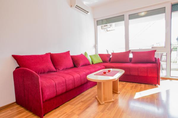 Larus-ft apartments are new, fully equipped and modern apartments located in a small, picturesque central location Mimica. They are located under the main road and are located 60 meters from the beach and the town center, which is ideal for family holidays. Also, apartments have parking space for all vehicles and is located at 40 meters from a supermarket, post office, ATMs, restaurants and pizzerias. Location of the apartment was excellent and because it is located 15 minutes drive from Omis and 30 minutes drive from Makarska, which are known for an active holiday and nightlife, and Split is located only 45 minutes drive away.