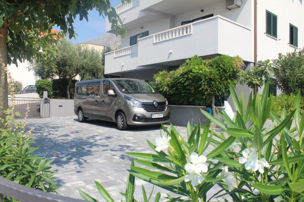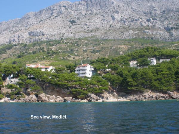 Apartements are in beautiful, quite location with nearby green trees and awesome sea views from balconies. There is a private, beautiful beach about 2 minutes of walk from the house or you can visit main Medici beach with two bars. Apartements are in a small distance from food shop (7 mins of walk) and also from some restaurants (in mimice aprox.10 mins of walk). If you are there with car, you can also visit some nearby places that are often visited by tourists (Omiš, Brela, Split, Makarska etc.) Apartement was clean with a realy nice interior. There is a common grill for all guests (next to the apartements house). Owners are kind and permanently smiling people and they are always willing to help if you need something. I would totally recommend these apartements to people who do not like a crowded beaches and evening intense noise because there is realy peace and quite. We truly enjoyed our vacation there and we all hope that we will come back one day.
