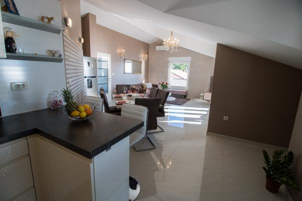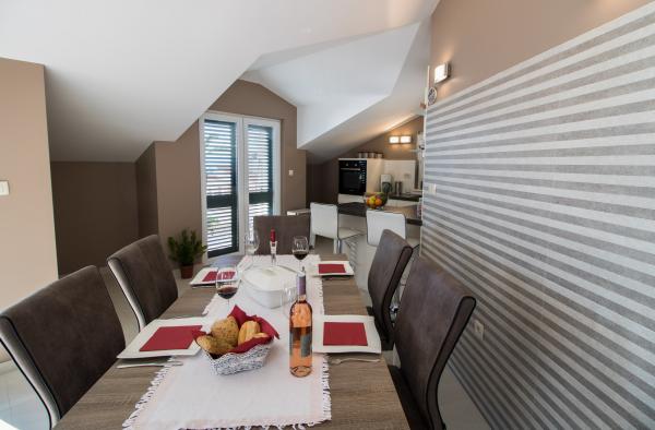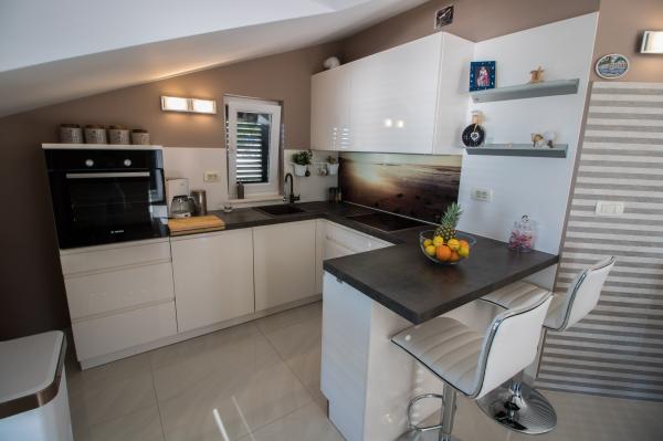 We were staying at the penthouse at the end of the seventh month. It was beautiful to us .. the penthouse was clean, modernly equipped, .. we had a sea view from the terrace. It was a cure for soul and eyes. Mrs. Mira is such a nice and kind person and always smiling .. the beach is close .. for families with children very safe place .. We will be happy to recommend you and of course we will be glad to come again .. Thank you very much.. Greetings Edis