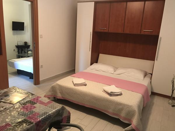 Great accommodation. We were in apartment with two rooms and two king-size beds that has small kitchen with everything that you need for fast preparation meals... Free parking... Lovely owners.. Accommodation is basically on the beach and it's kid friendly... It's a nice little place, quiet and perfect for vacation with small kids.. There are few small and intimate beaches, no crowds, no loud music, just peace and quiet... lots of natural shade.. Nearby is beach bar and restaurant.. I would definitely recommend and also would go again.