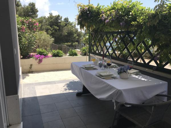 Great place, great owners - very helpful. The apartment is right by the sea, which can be reached by steps to the beach. A quiet place if someone like us is looking for peace and quiet to spend time with children. The beach is almost empty.