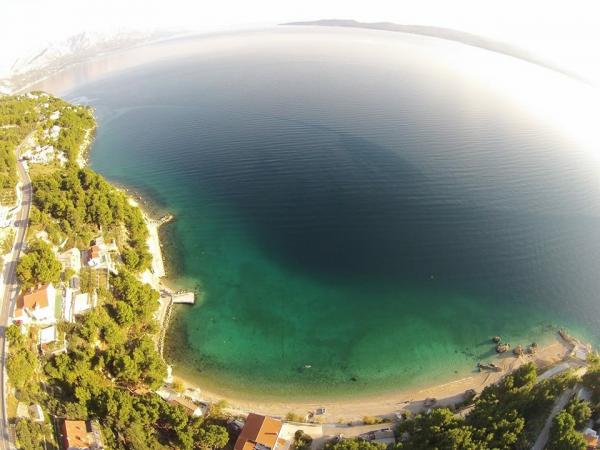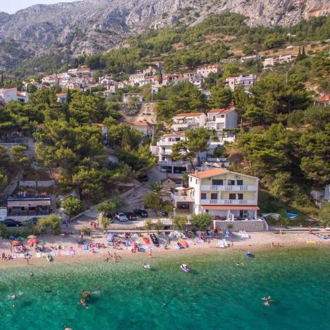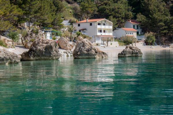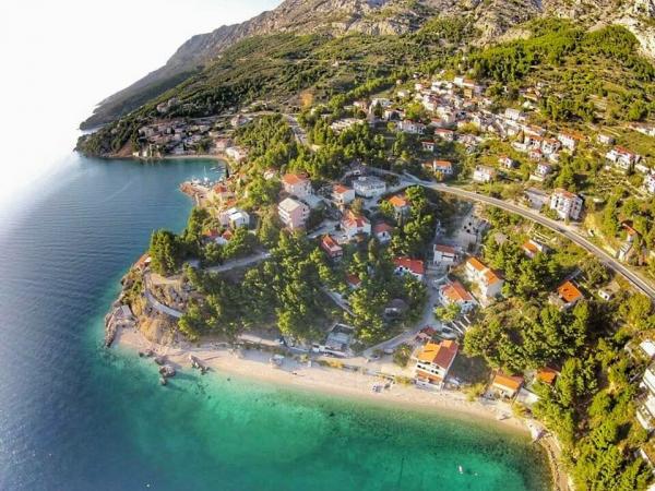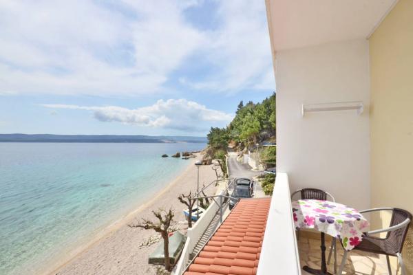 A beautiful place for a vacation. The location of the apartment is great, just a few steps from the beach. The apartment has 2 balconies, from which you can enjoy a beautiful, enchanting view and listen to the sound of the sea. The sea is crystal clear. Small pebbles in the sea, and sand a little further. The equipment of the apartment is at a good level, we had everything we needed. The owners are great people. They communicated with us throughout our stay to see if we needed anything. We were 2 families, a family of three and a family of two, which suited us with the layout of the two rooms. One bathroom was enough for us. In front of the entrance to the apartment is a large terrace with a grill. We could also leave inflatables and a paddleboard there without any problems. The great restaurant "Val" was within easy reach. The cafe above the cliff is also great. You can jump from the cliff into the sea. We also had beautiful big waves for a few days. There is only one grocery store in town, which you have to walk up the stairs to the main road. But we were by car, so we bought twice as much so that we wouldn't have to go every day. But it is better to shop e.g. in Omiš or in Baška vode, when you go on a trip somewhere. We will remember this wonderful place. It's a place to relax, it's quiet, there are few people and we will definitely come back here.