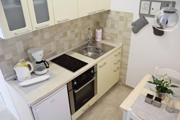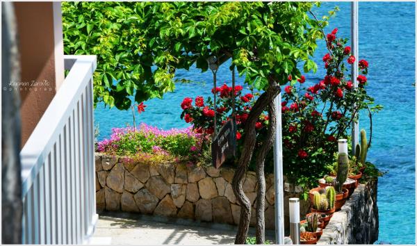 I will start with the hosts, because they are wonderful. Karmen and the whole family will make your vacation extremely pleasant. They are there for every question and every kind of help. We were greeted by a clean and tidy, beautifully designed apartment, fully equipped with everything needed in the kitchen and bathroom. Towels and cloths are changed regularly, every two days. They also make fine olive oil, which you can buy in the building. The apartment is perfectly positioned, with its own small stone beach where there is shade in the afternoon. You can stay cold all day if you position yourself under a tree. We could use the barbecue on the beach at any time, it is available to guests. The nearest restaurant is 3 steps from the property and has good cuisine, with standard prices for the Croatian coast. A smaller shop is a 3-minute walk away, but it is well equipped. There is also a smaller sandy beach near the shop, and a larger one is about a 10-minute walk away. The whole town is beautiful and quiet, ideal for a peaceful vacation.