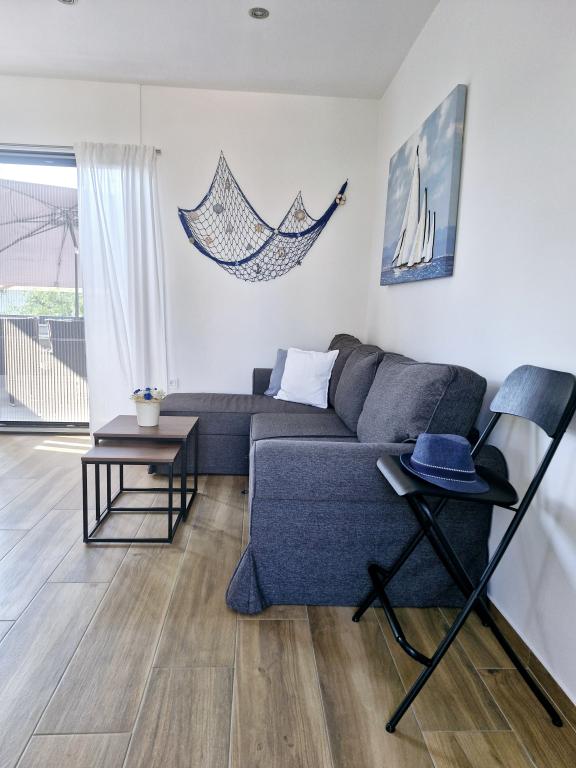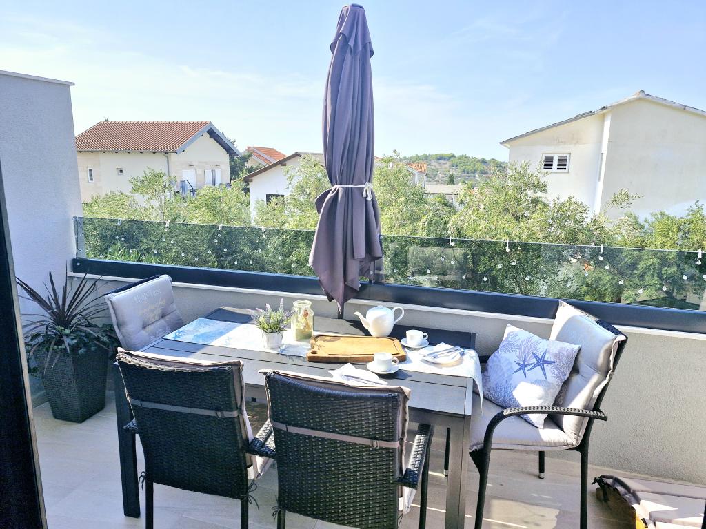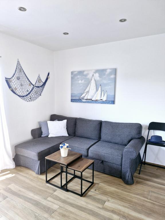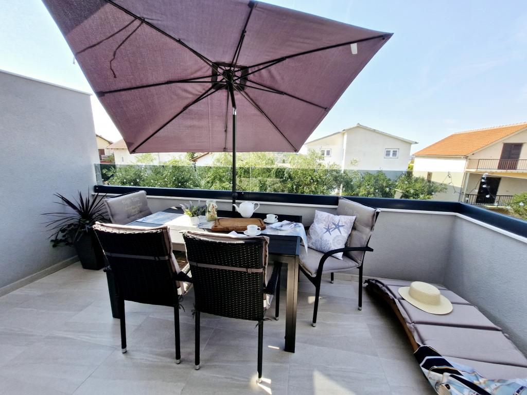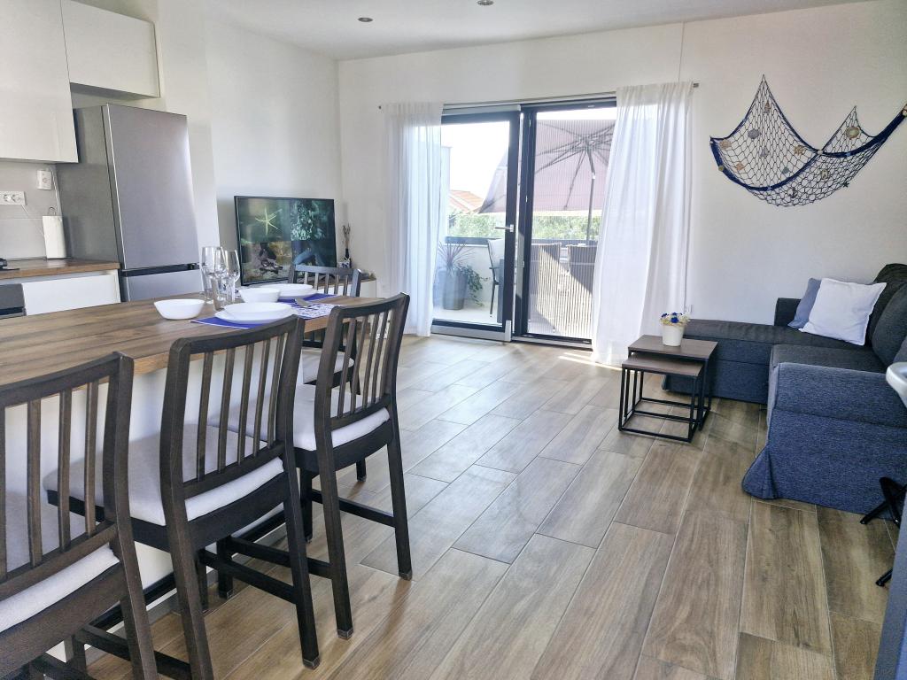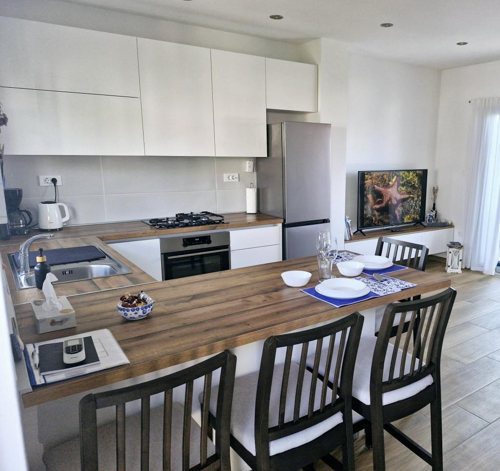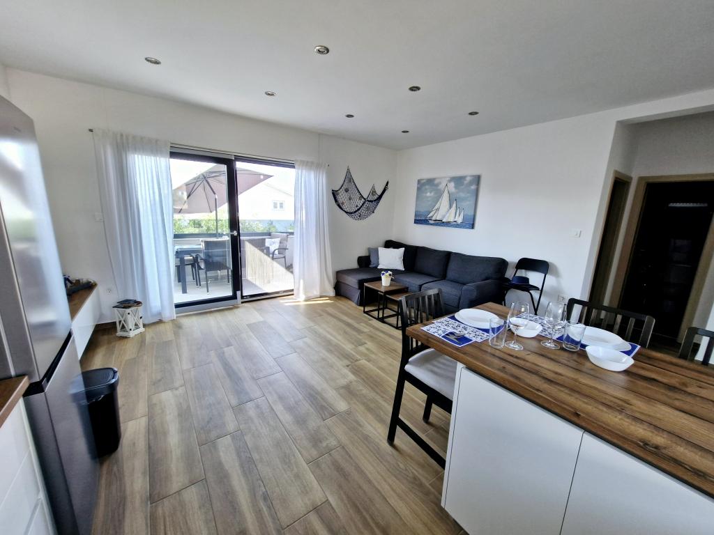 The apartment is located on the island of Murter in the town of Murter. It is connected to the mainland by a bridge, which fully ensures traffic communication. The apartment is located in a newly renovated house, and its area is 50 m2. The apartment accommodates up to 3 people (2+1). It is the first floor of a house located in a quiet street and as such offers peace and discretion for a pleasant vacation. It consists of a kitchen/dining room/living room, a bedroom, a bathroom and a balcony with a sea view. In the bedroom there is a double bed (dimensions 160x200cm), and in the living room there is a comfortable sofa bed. It is equipped with all household appliances, 4k Android and satellite television, Internet (Wi-Fi), air conditioning and a parking space under video surveillance. A washing machine is available to keep your laundry clean during your stay in our apartment. The building is not designed for smokers, but it has a balcony where smoking is allowed. We pay a lot of attention to the maintenance of the apartment.