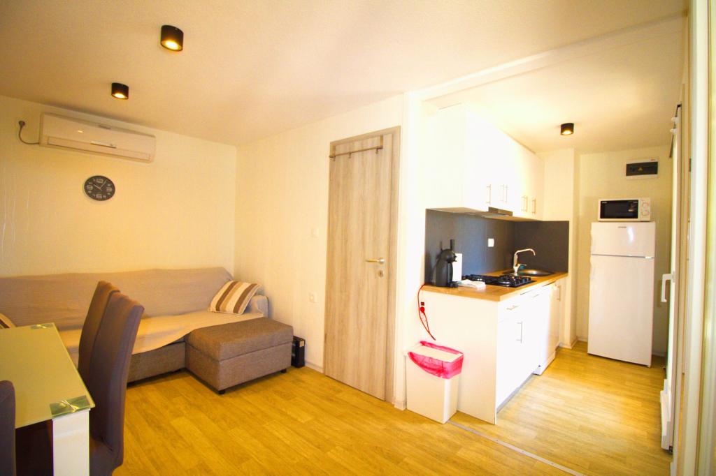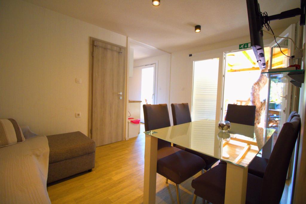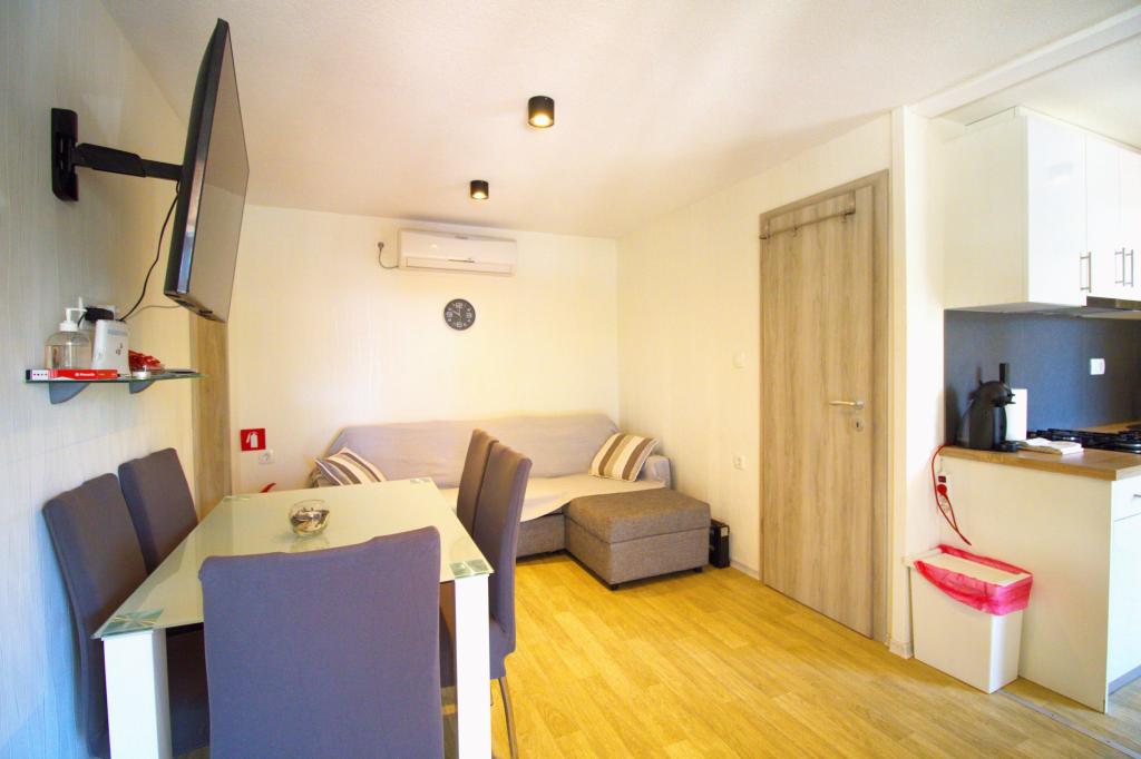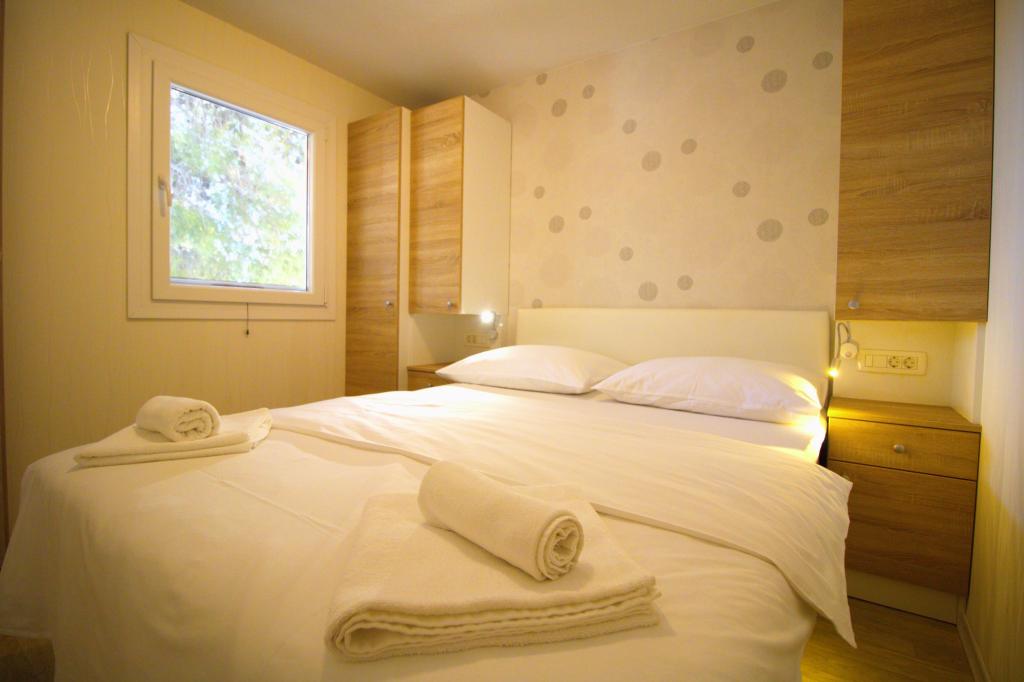 Mobile home with two bedrooms is located near the sandy beach of Slanica, it is only 50 meters from the sea. The mobile home is equipped with a kitchen, refrigerator, dishwasher, WiFi internet. The bedrooms can sleep 4 adults, in the living room there is a couch that can be used as an extra bed for sleeping. In front of the apartment there is a beautiful terrace with a view of the sea in natural shade. Parking for one car is provided in front of the house and is free.