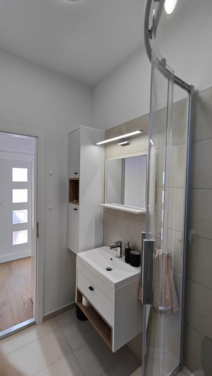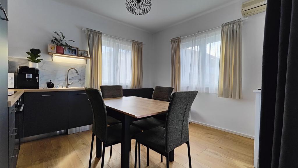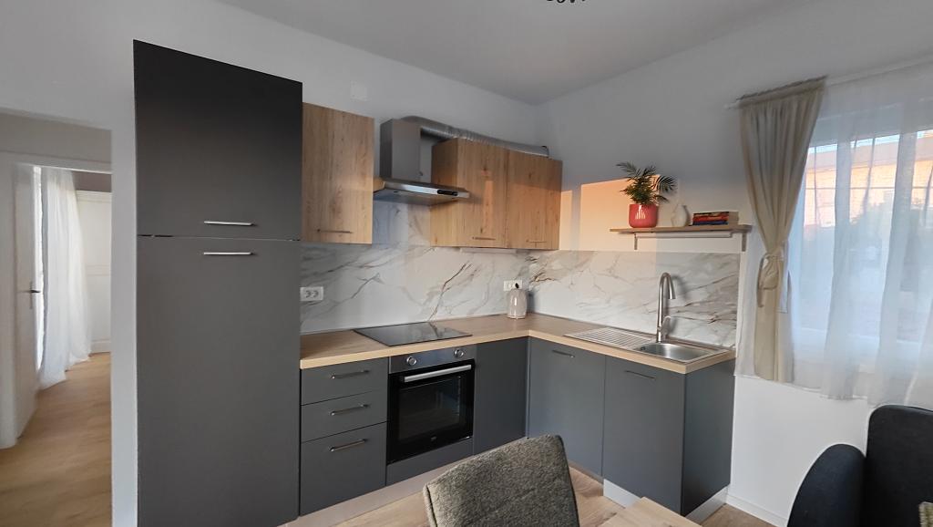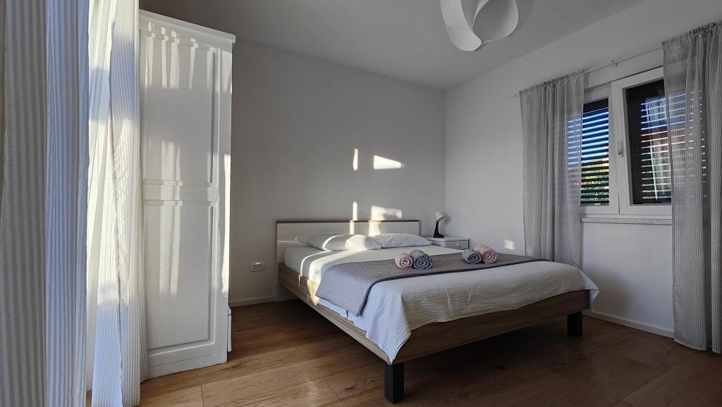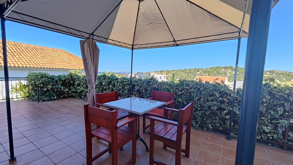 Completely renovated apartment in a private setting, with a large terrace and sea view, 300 m from the sandy beach Slanica. Guests have access to a barbecue and a space for socializing in the yard, as well as a secured parking space. The apartment has a large separate bedroom. The kitchen is fully equipped, with a coffee machine, dishwasher, large refrigerator and freezer, and a washing machine is also available.