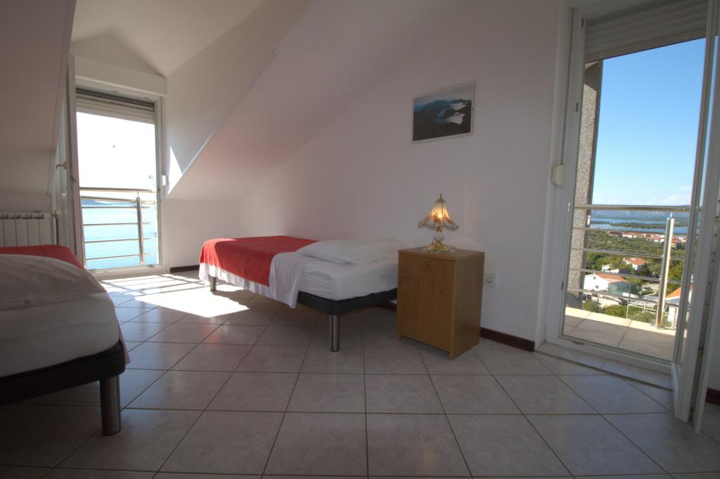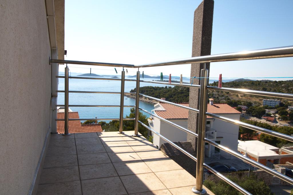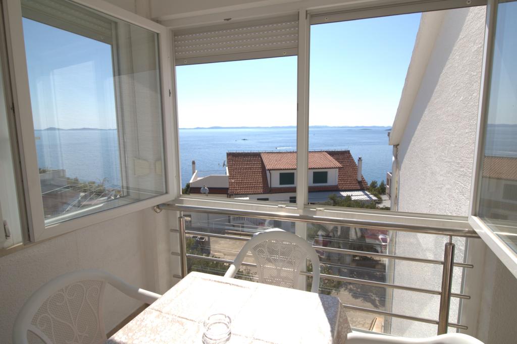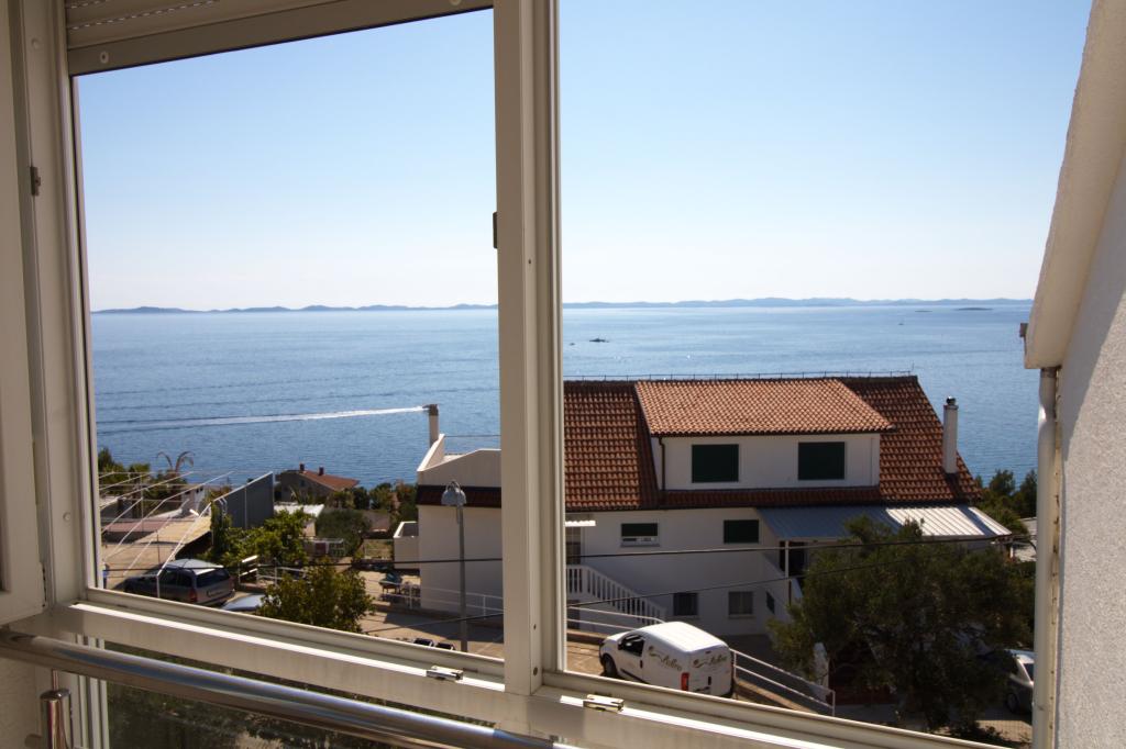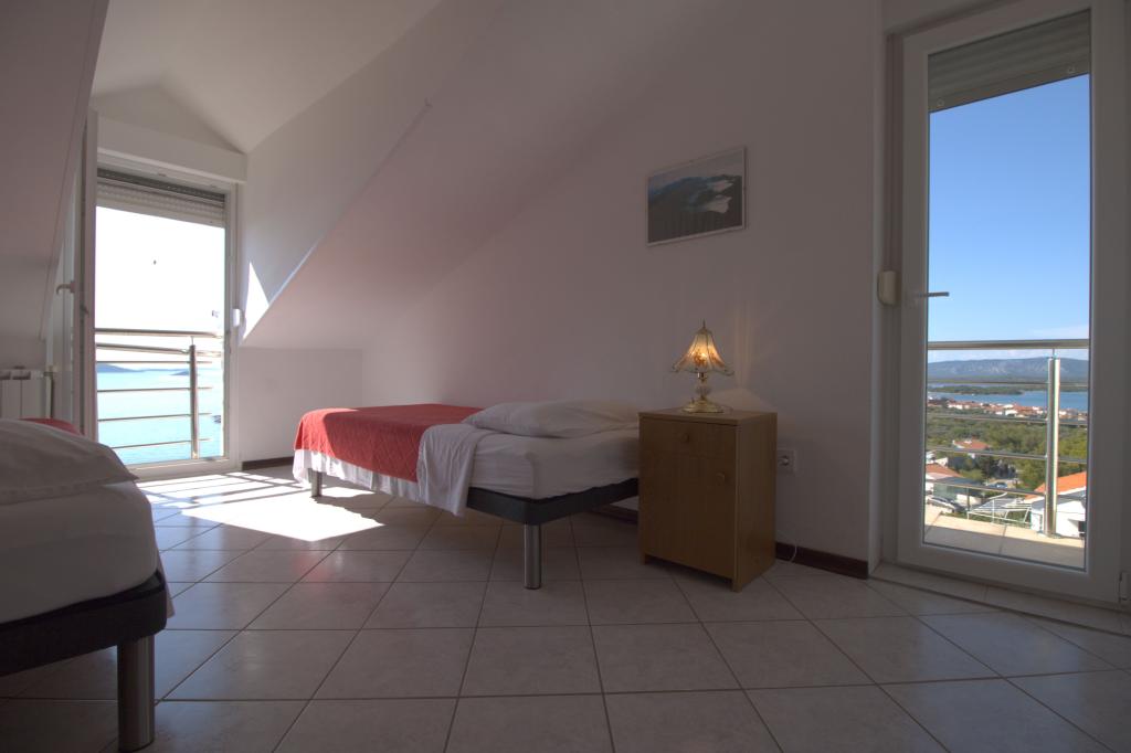 The apartment with a beautiful view of the sea is located in an excellent location only 300 meters from the sea. The apartment has an area of 75 m2. It has two bedrooms that can sleep 5 adults. It has a living room. It has an extra bed for one person. It has a bathroom with a shower. The area of the balcony/terrace is 12 m2. The apartment is located on the second floor of the house. The apartment is equipped with TV, satellite receiver, oven. Parking is provided and included in the price. There is an outdoor grill that can be used. The apartment is about 1000 m away from the town center and 300 m from the sea or the first beach in Murter. The apartment has a beautiful view of the sea, the sandy bay of Slanica and the Kornati islands.