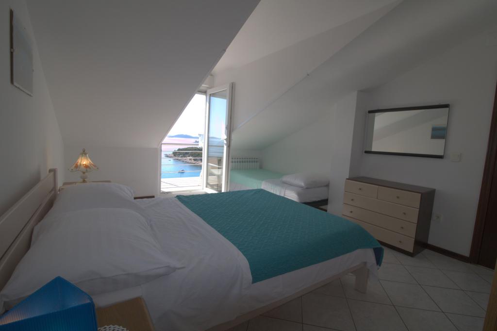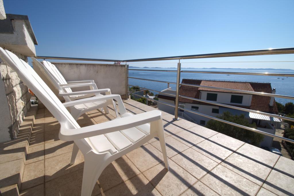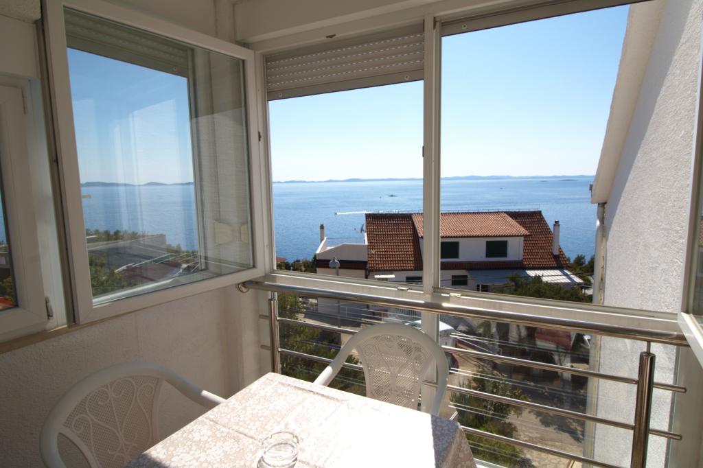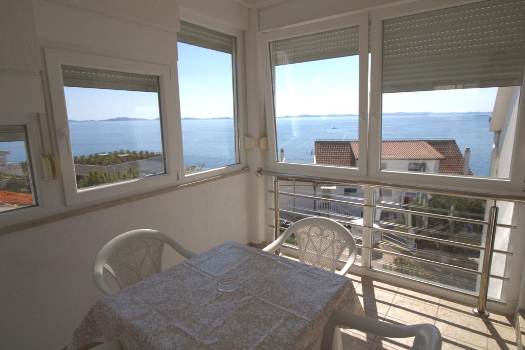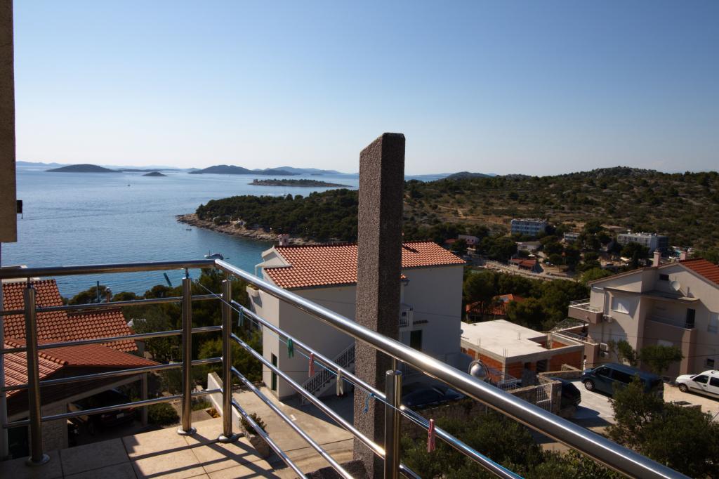The apartment with a beautiful view of the sea is located in an excellent location only 300 meters from the sea. The apartment has an area of 75 m2. It has two bedrooms that can sleep 5 adults. It has a living room. It has an extra bed for one person. It has a bathroom with a shower. The area of the balcony/terrace is 12 m2. The apartment is located on the second floor of the house. The apartment is equipped with TV, satellite receiver, oven. Parking is provided and included in the price. There is an outdoor grill that can be used. The apartment is about 1000 m away from the town center and 300 m from the sea or the first beach in Murter. The apartment has a beautiful view of the sea, the sandy bay of Slanica and the Kornati islands.
