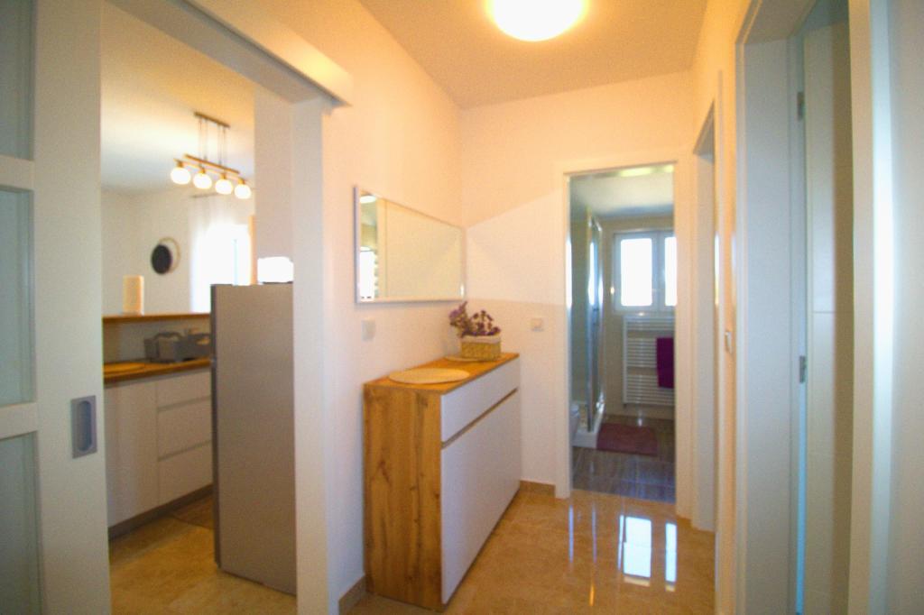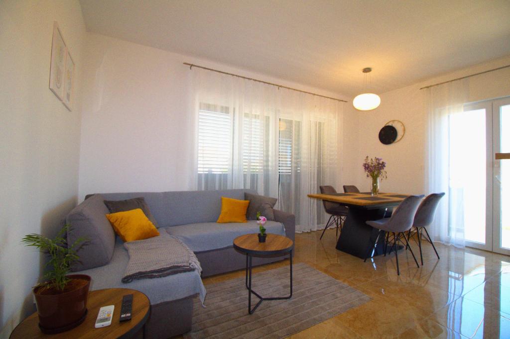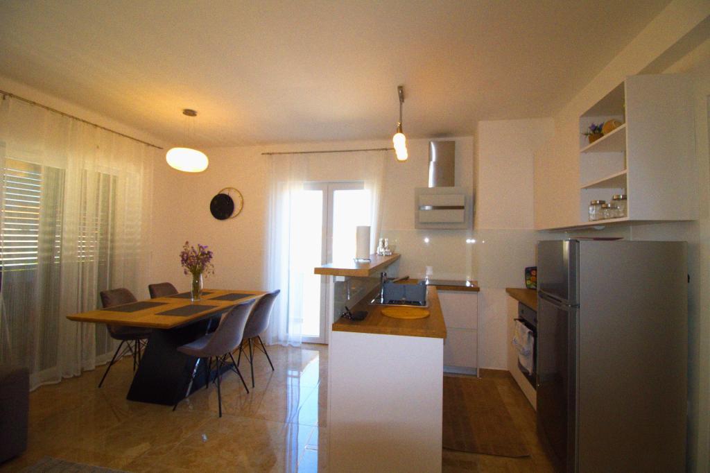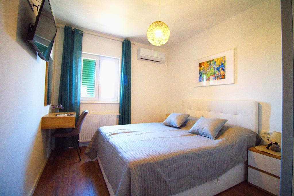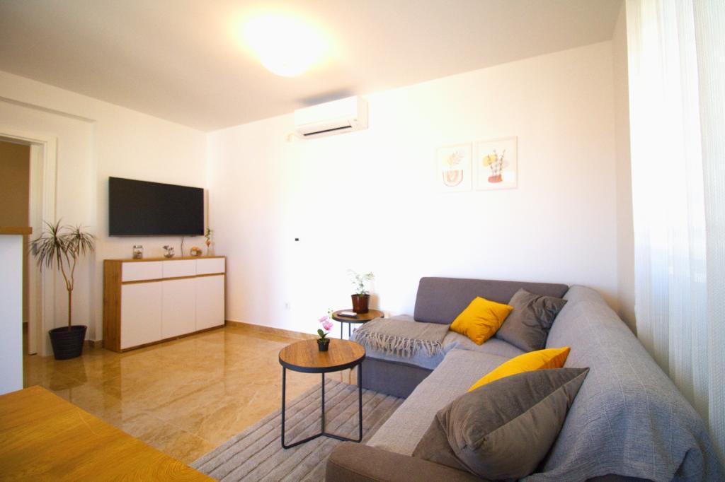 Experience a relaxing vacation in our newly renovated two-room apartment, perfect for up to 4 people. It is located in a perfect location, only an 8-minute walk from the town center and 12 minutes from the beautiful Slanica beach. The apartment offers a comfortable stay with air conditioners and TVs in the bedrooms as well as in the living room, and includes a secured parking space. With its terrace, it is an ideal place to relax with a view of the sea and enjoy the beautiful beaches.