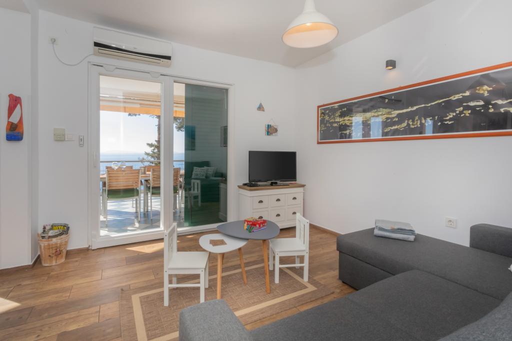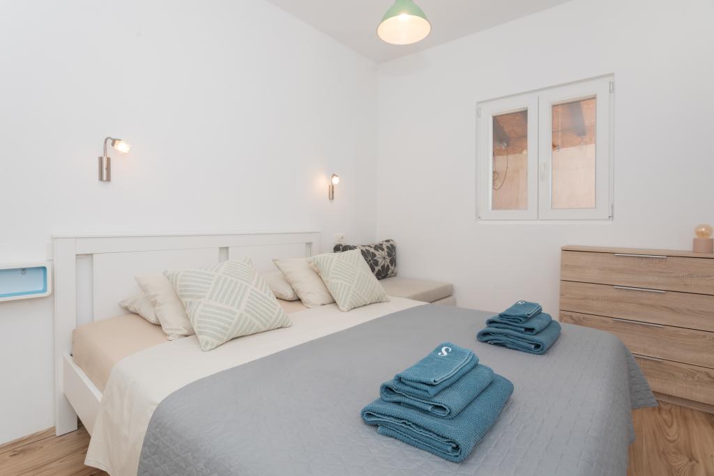 Modernly equipped apartment with a beautiful sea view, just 40 m from the sea, 65 m2 in size. The apartment has two bedrooms for 4 people plus an extra bed for one person, bathroom, living room, kitchen and dining room and a beautiful terrace of almost 25 m2. The apartment is located on the first floor of the house and is equipped with TV/sat, PS 4, wi-fi, air conditioning, heating, oven, kettle, coffee maker, dishwasher, washing machine. The apartment has a barbecue and a summer kitchen in front of the entrance. Parking is provided and included in the price. The apartment itself is located in a very quiet part of Murter, 1100 m from the town center, 40 m from the sea and rocky beach, 300 m from the sandy and pebble beach Čigrađa and approximately 800 m from the sandy beach Slanica.
