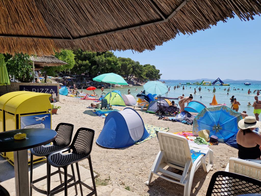 Newly decorated two-room apartment of 43.55 m2. It contains one double room (two beds measuring 200x90cm), one single (dimensions 200x160cm) and a sofa bed in the living room. It is equipped with all household appliances, android TV, internet/wifi, air conditioning, secured parking under video surveillance. It is located on the second floor of a residential building, which is located first row to the sea, more precisely on the sandy beach of Slanica. It consists of a hallway, 2 bedrooms, bathroom, kitchen/dining room/living room with a view of the sea and the Kornati National Park. Nearby there is a shop, several catering facilities, a large slide, a playground and tennis courts. The beach is also suitable for the little ones because it has a large shallow sandy part, and just 100 meters away there are many places under pine trees for a slightly deeper entry into the sea. There is a promenade to the center of Murter. It is important to note that this beach does not host any late-night music events, but exclusively daytime and catering events.