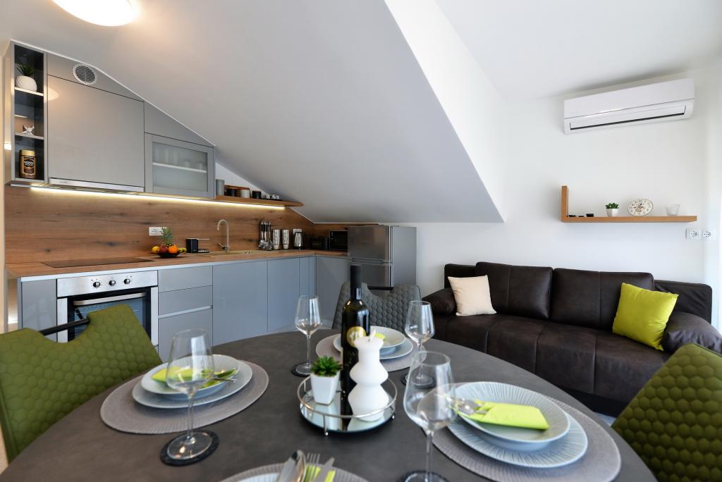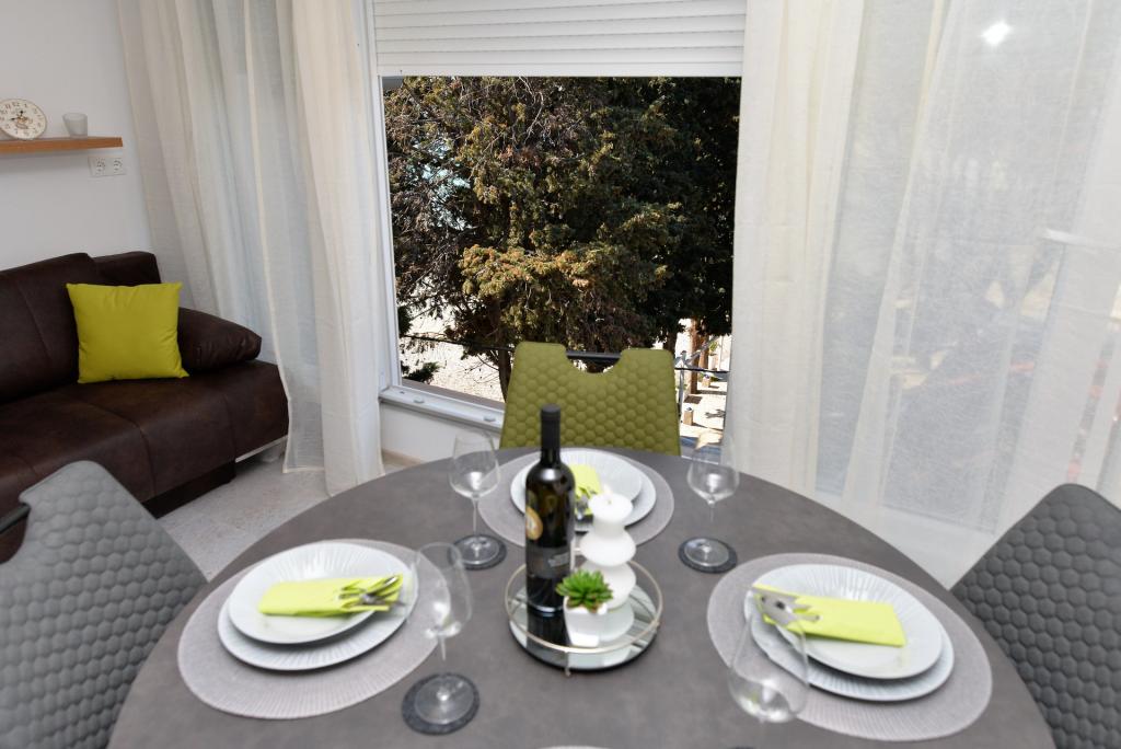 The apartment is brand new very nicely decorated. It has everything we have at home, so we didn’t miss anything at all. It was a beautiful holiday, close to the turquoise sea and clean beach despite the sand. Families with children enjoy it very much here. Top destination, close to the sea, close to town, close to the highest peak of Murter Raduč where there is a nice walk .... In the evening after 9 pm everything calms down nicely and it's nice to enjoy the silence. The host of the apartment is a very friendly person oz. Live, even nicer.