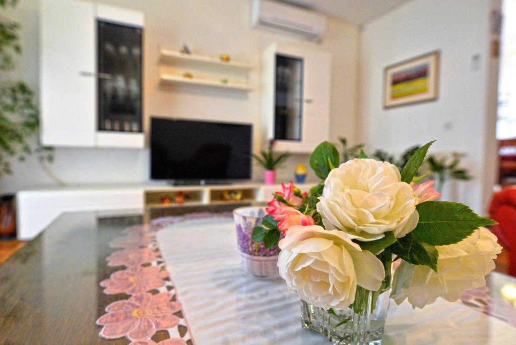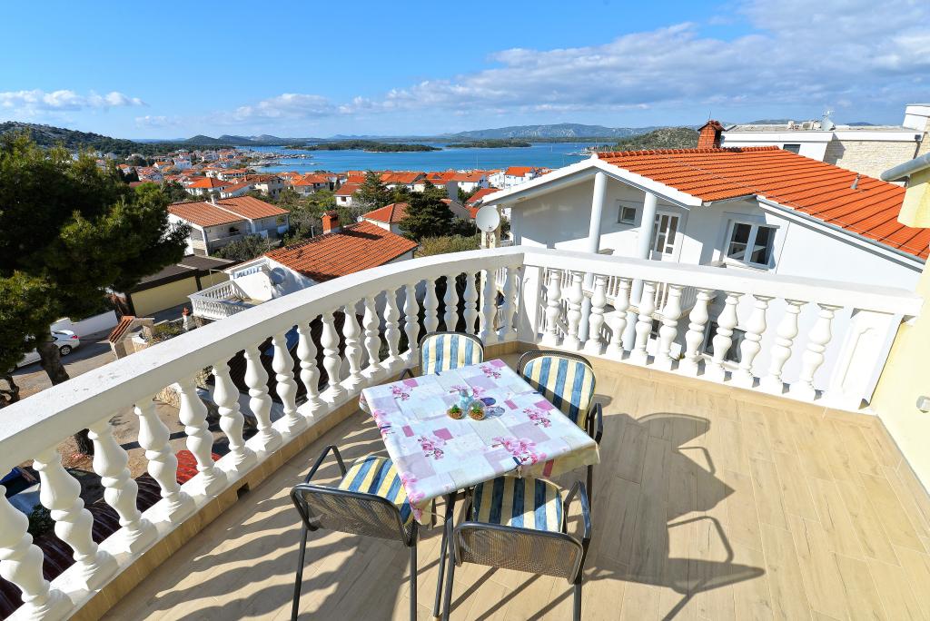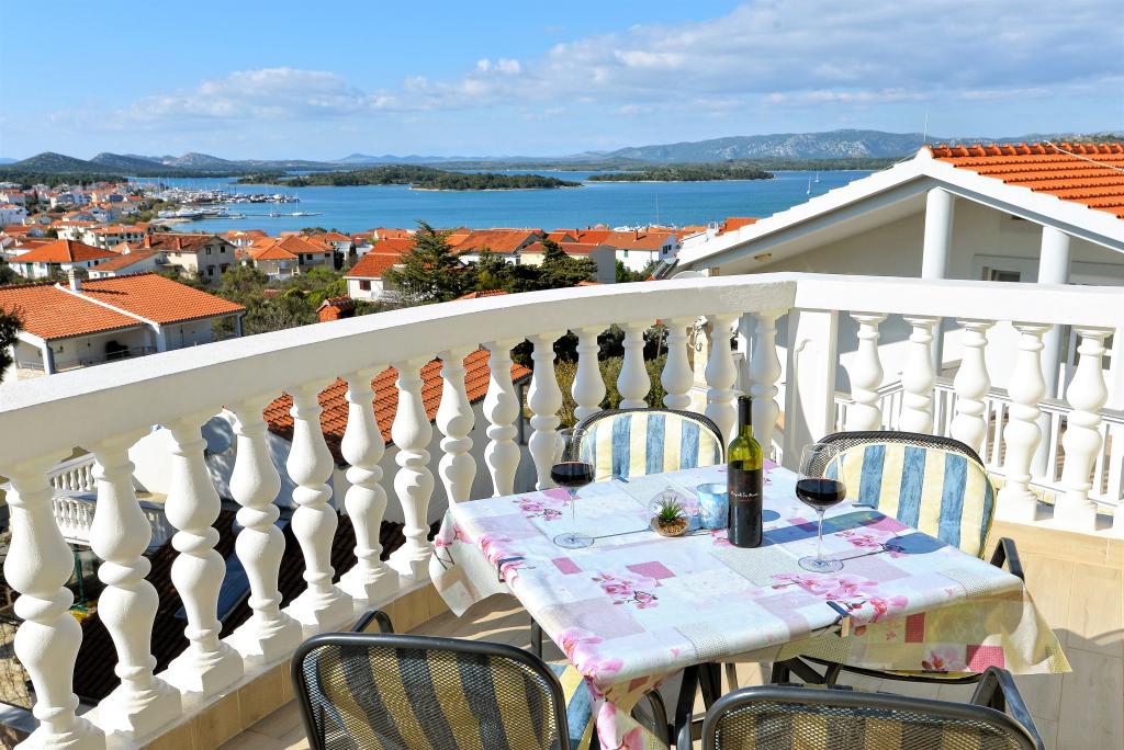 For your perfect vacation we offer you six beautifully decorated and fully equipped apartments (air conditioning, wi-fi, satellite TV free of charge) with one / two/ three bedrooms, kitchen, bathroom, living room and of course the inevitable large terrace, which offers a beautiful view of the sea and the Murter archipelago. The facility is located in a quiet part of town, in a cul-de-sac so traffic is kept to a minimum, and is therefore ideal for guests looking for peace and quiet, and for families with children. A large outdoor grill is available for barbecue lovers. Covered parking places for ten cars are in front of the house. Within 10 minutes walk there is a beautiful sandy beach Slanica, distance from the town center is about 600 m where there are shops, restaurants, caffe bars and where the intense summer life is full of events. Our apartments are desirable because of the beautiful view, location and comfort, but also because of our open hearts and hospitality. Welcome!