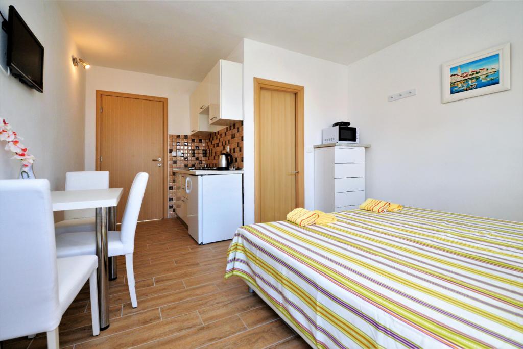 We have just finished staying in the apartment at Goranka's. The apartment is small, but intended for two people, so it is sufficient. It has a large terrace. The apartment is clean and well-kept. The owners were very polite. The location is also great. A large selection of beaches, everyone will find something for themselves. We recommend