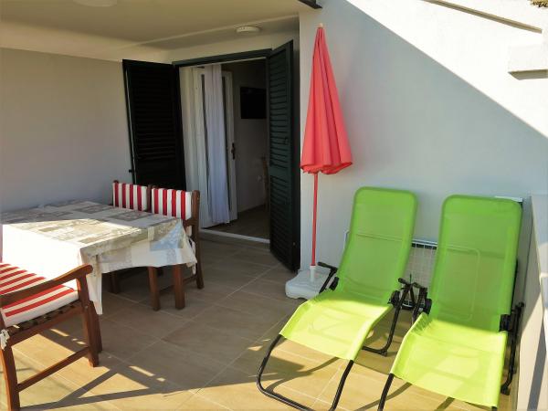 The house of the Janči family is located in a quiet place in lush greenery ("Murter Bel Air"), only 40 m from the beach. It offers two modern apartments (type 2 2) of 38 m2 and a terrace of 14 m2, for a comfortable stay for up to 4 people. The terrace offers a beautiful view of the Murter Sea and the Kornati archipelago. Guests have at their disposal a courtyard terrace with barbecue and the possibility of mooring on a buoy in front of the house. Bicycles can also be used to go to the store and similar shorter distances.