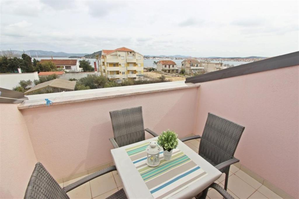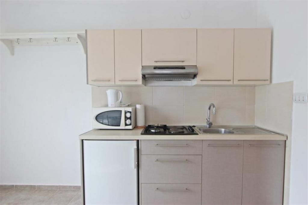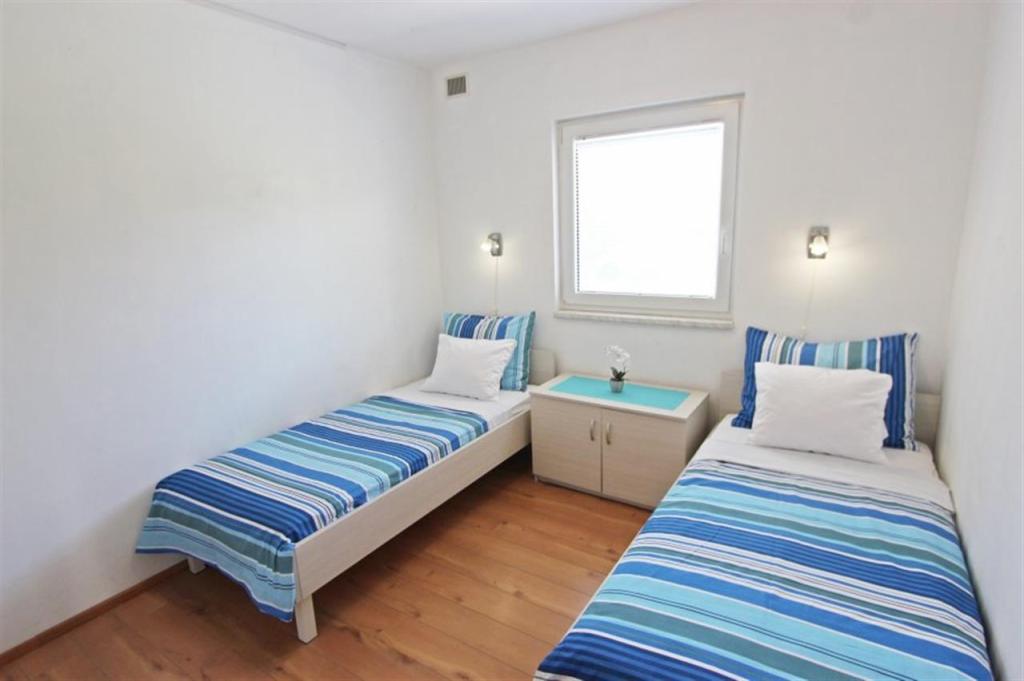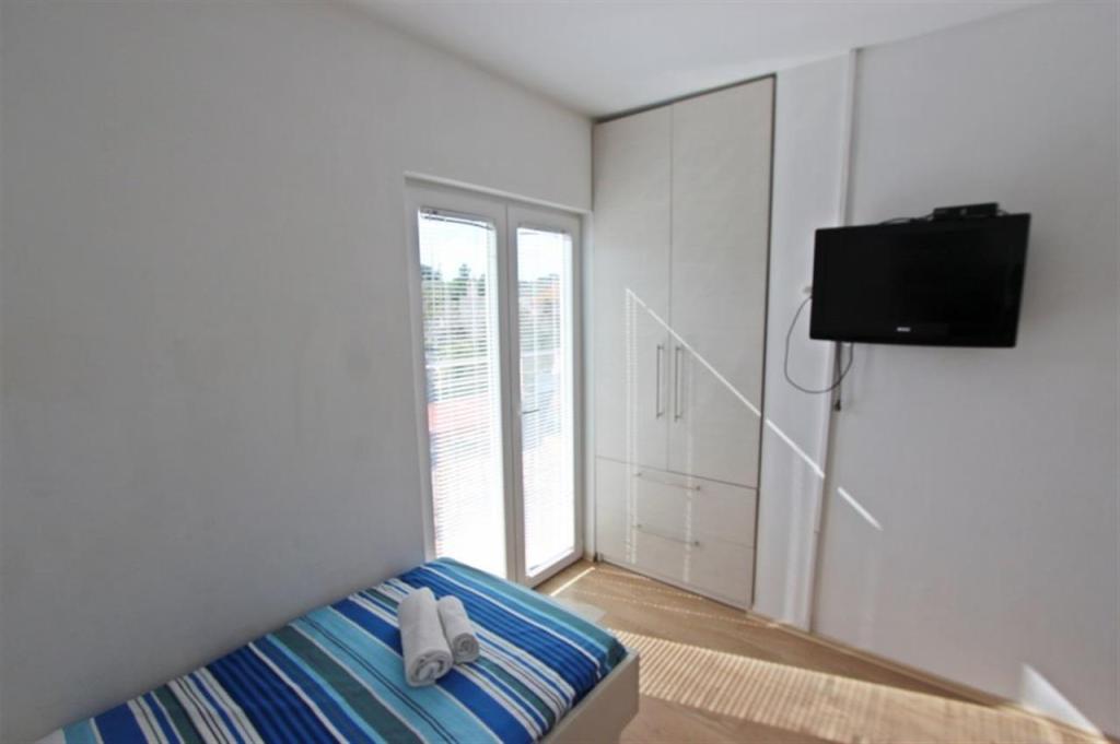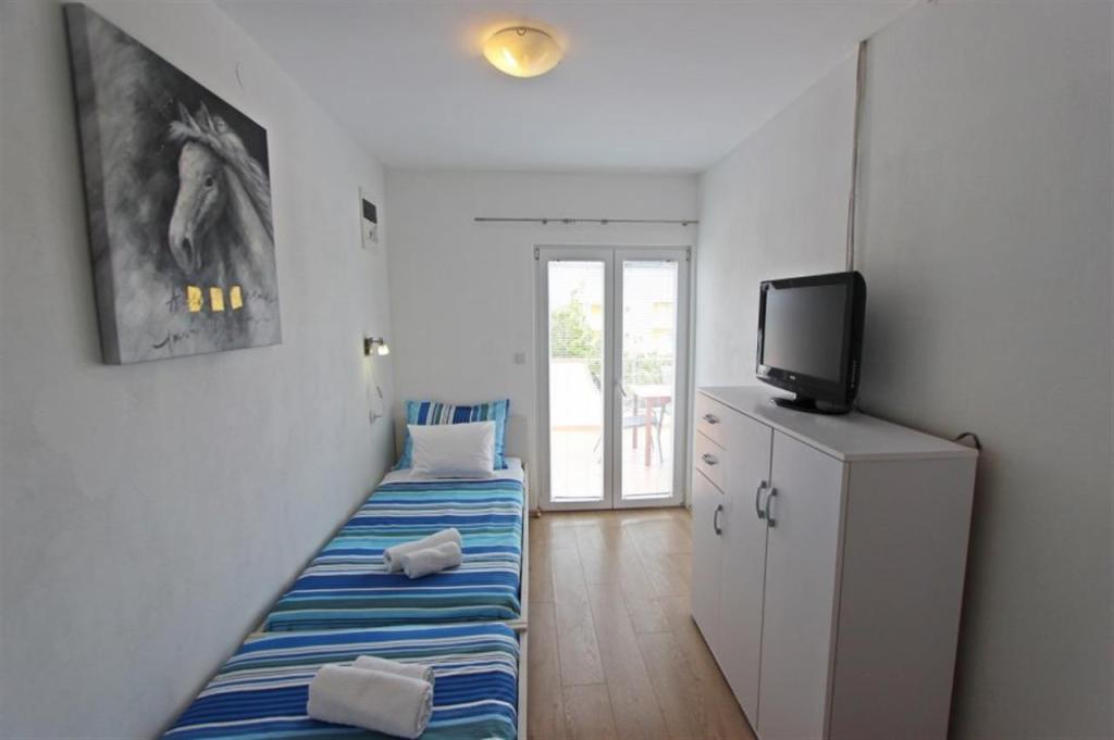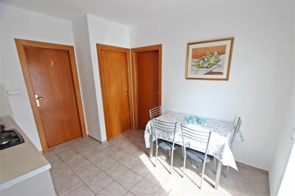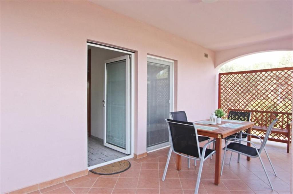 Apartments for four persons 2 + 2 or studio apartments 2 + 1. They consist of a bedroom (one double bed) and a room with two single beds (dimensions 200x90) or a bedroom and a bed in the living room, while studio apartments consist of a double bed with extra bed, kitchen, bathroom and large terrace (15m2 / 18m2). Also, on the ground floor there is a room with a washing machine that guests can use. The apartments are equipped with TV and air conditioning, wi-fi, microwave and refrigerator with freezer. In front of the apartment we have an outdoor grill that guests can use at any time. Parking is provided and located in the yard. The distance to the first beach and shops is 250 m while the center is 1 km away