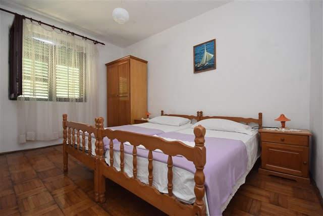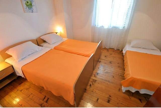 Apartments Ratimir are offering you accommodation in 2 apartments (2 1, balcony with sea view, 4 1, two large balconies) and separate bungalow (4, garden terrace). Apartments are equipped with air conditioning, Sat TV, Wi-Fi. There is a car park and a barbecue area with a garden terrace. They are categorized 3 stars, located in a quiet area, 200 m away from the newly built beach, 500 m from the center