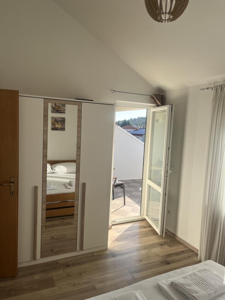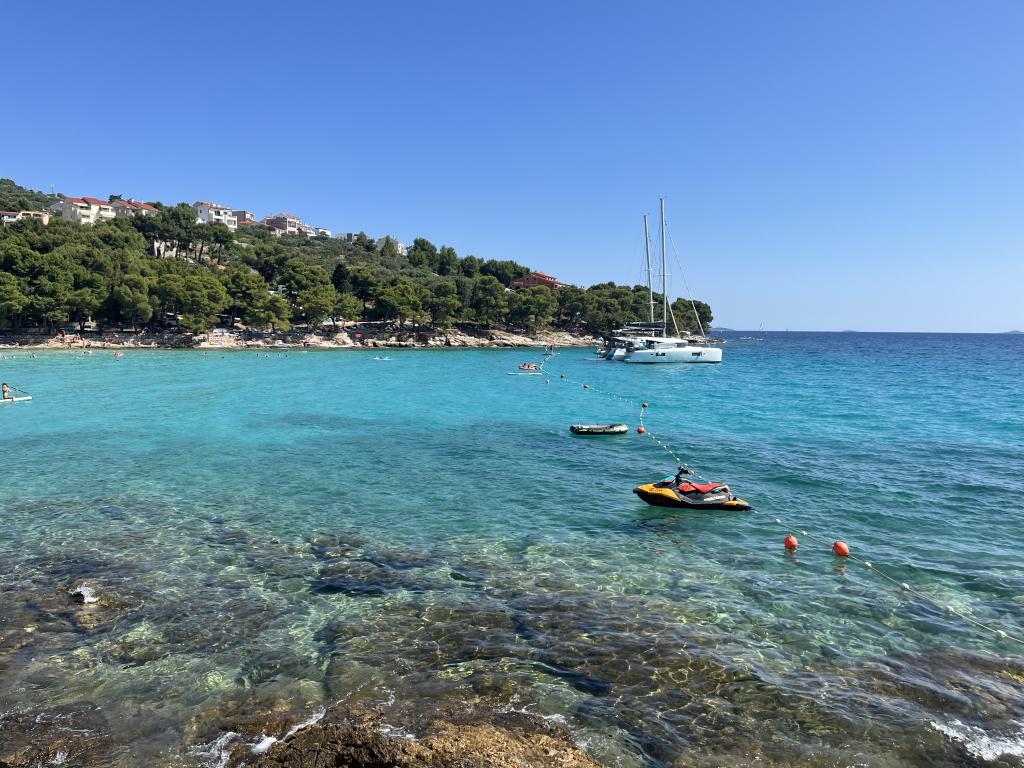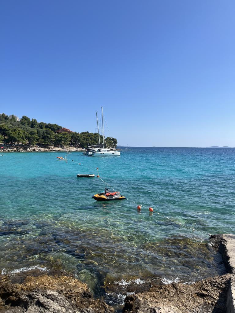 Center of Murter - a small town for a great vacation. Welcome to the Blue Pearl apartments in an exceptional location in the very center of Murter! The new Blue Pearl apartments are located in a quiet location in the very center of Murter and 10 minutes from the most beautiful beaches on the island of Murter. The location and stunning view from the apartment are the perfect choice for anyone looking for a relaxing and peaceful vacation on the nearby beaches of the island of Murter. The apartments offer a pleasant atmosphere and a terrace for relaxing and enjoying the view. Prices include rent for 2 people, and the price includes tourist tax, parking space and free Wi-Fi. The apartment has a bedroom with a double bed and a terrace equipped with a seating area, a bathroom, a living room with a kitchen and a dining room. The apartment provides bed linen, towels, dishes, a microwave and a coffee machine. Guests can enjoy using the covered outdoor barbecue located in a picturesque stone house. The apartment has a folding cot for the little ones.