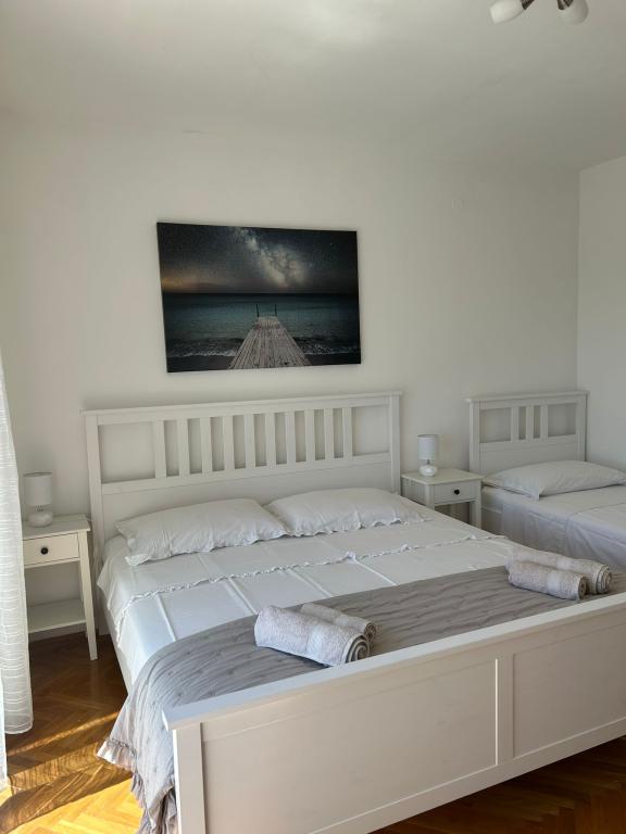 Fully equipped apartments in a private house, 1st row to the sea with a view of the Kornati National Park. We are located in a quiet area near the famous sandy beach Slanica, 10 minutes walk from the center.