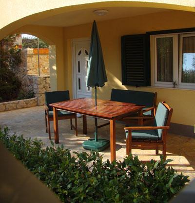 Murter, air conditioned apartments 2-4 persons, first row to the sea, each with its terrace or balcony situated in a large yard with Mediterranean garden in a quiet part of town. Parking is provided.