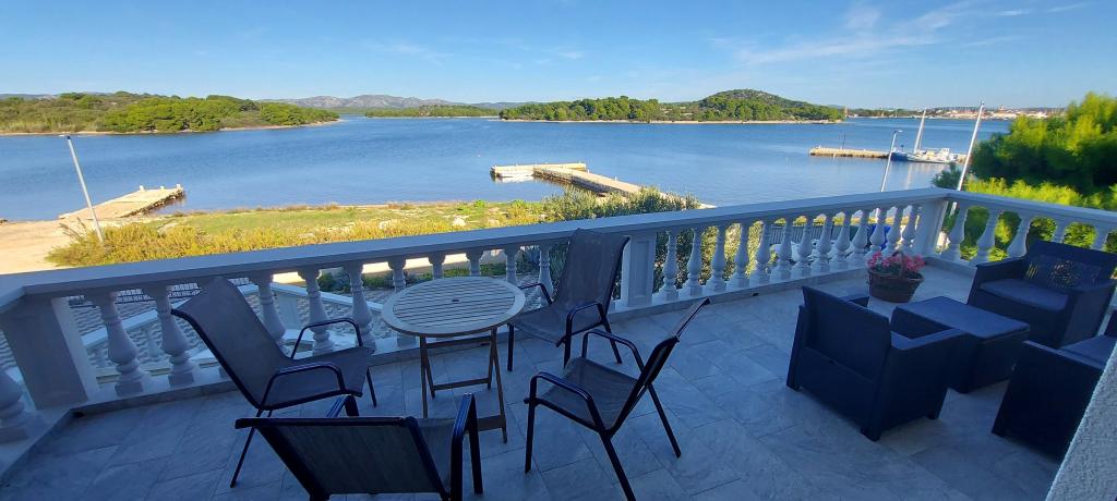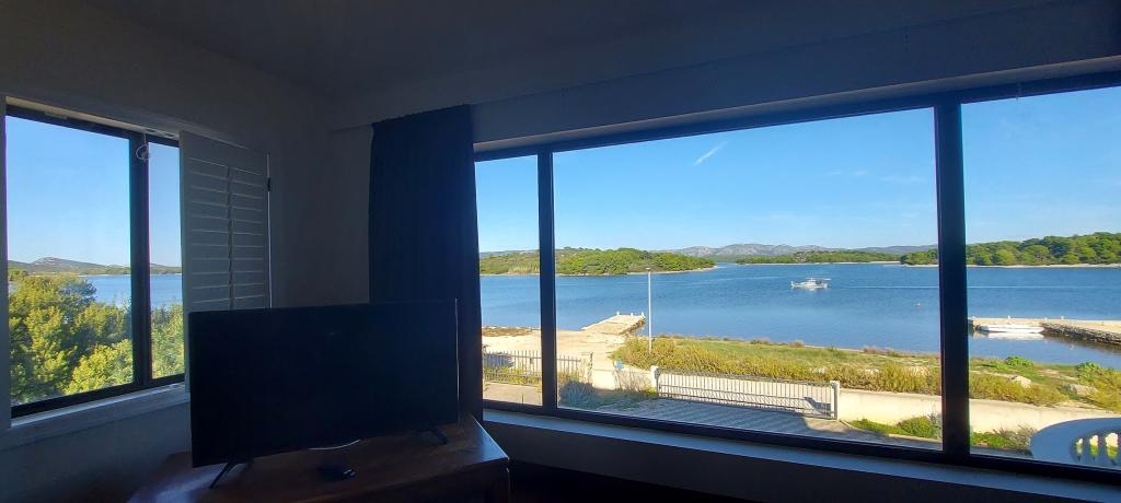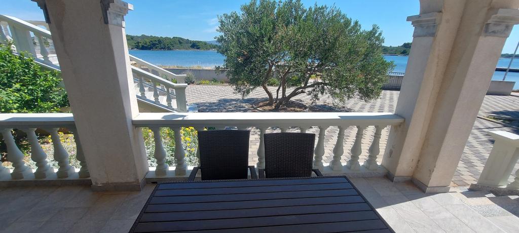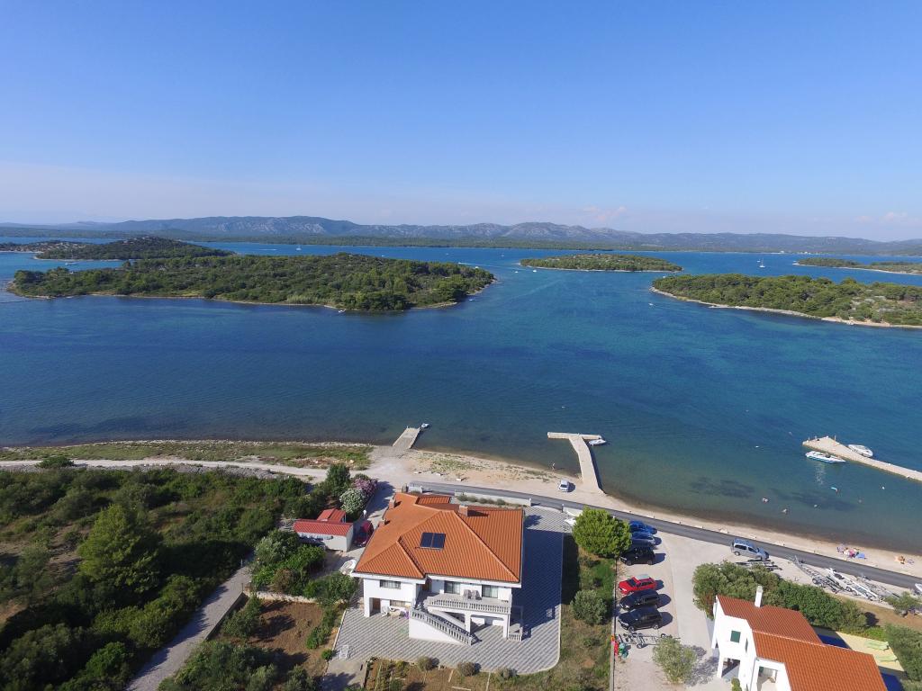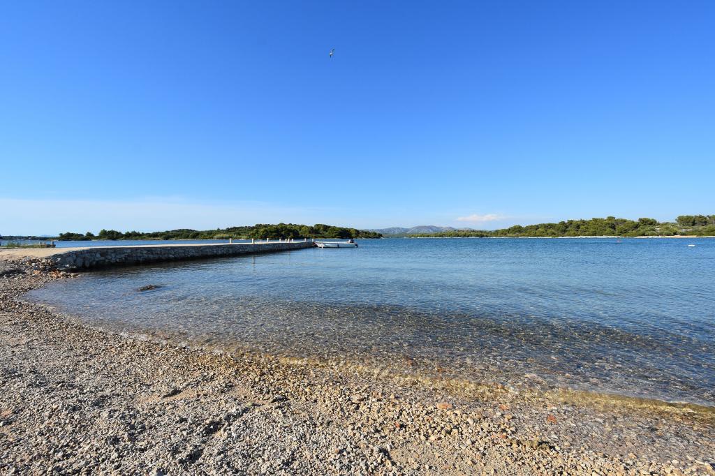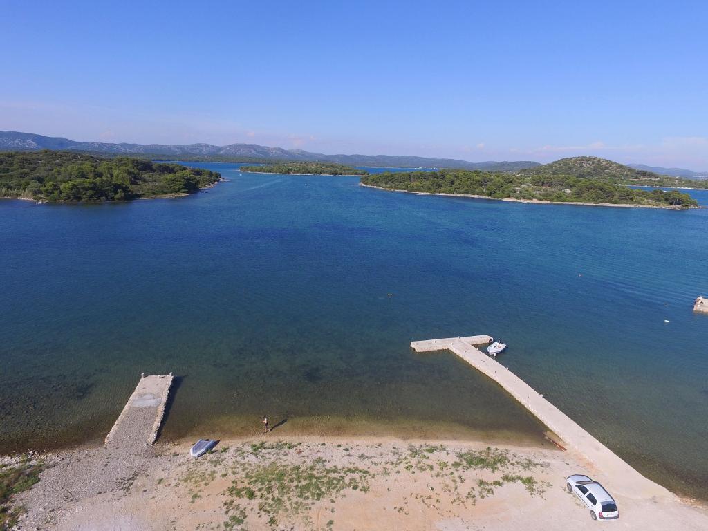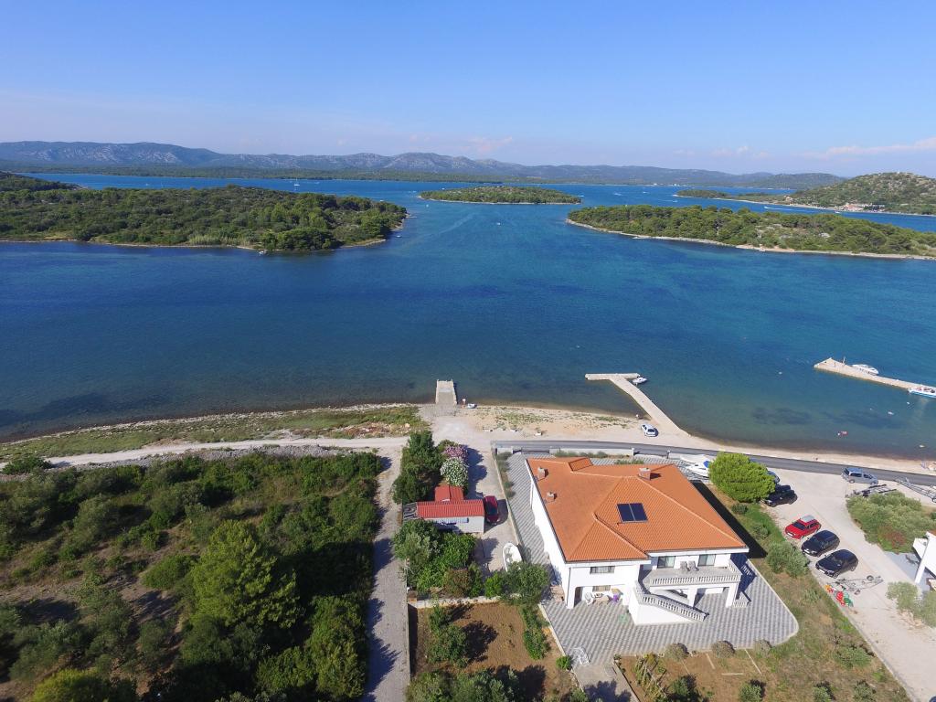 Apartments Milan are located directly by the sea. The house is located in a large olive grove at the end of the street, so the location is quiet and with little traffic. The road continues with a promenade along the sea around the island, perfect for relaxing walks and finding a secluded spot for swimming. In front of the house is a pier where you can moor your boat. On the shore, guests can enjoy swimming and sunbathing. The apartments have a view of the islets in front of Murter. The center of Murter starts about 1 km from the house, where you can find shops and restaurants.