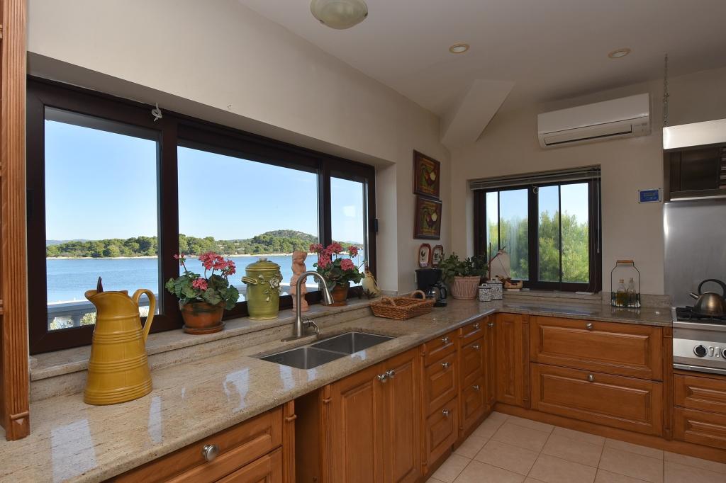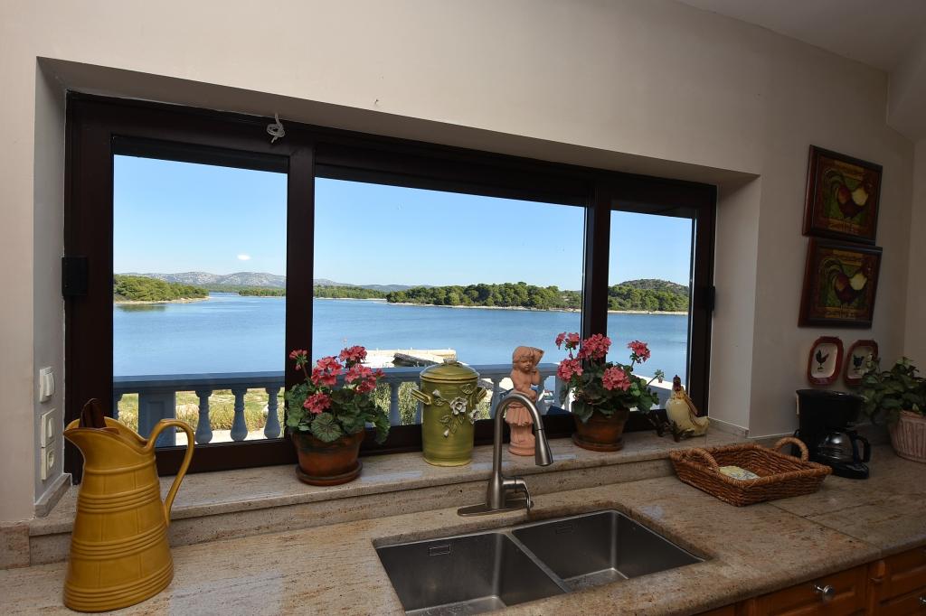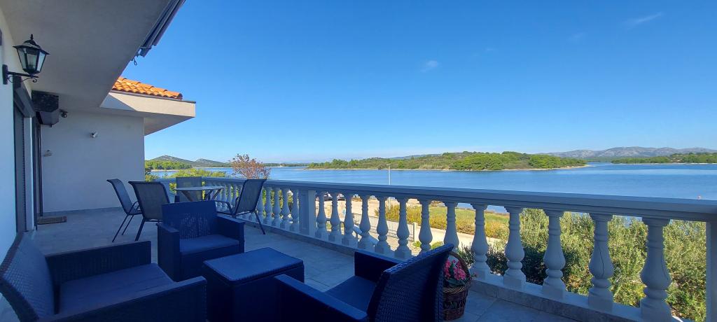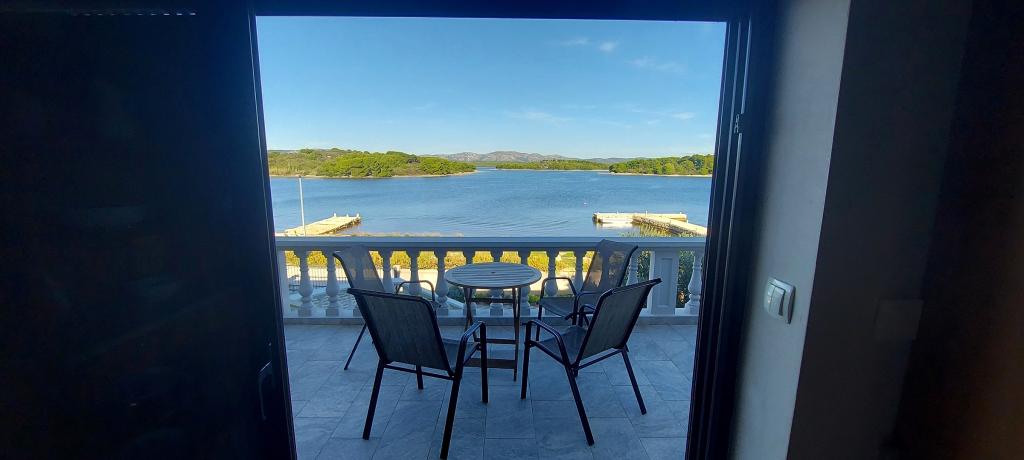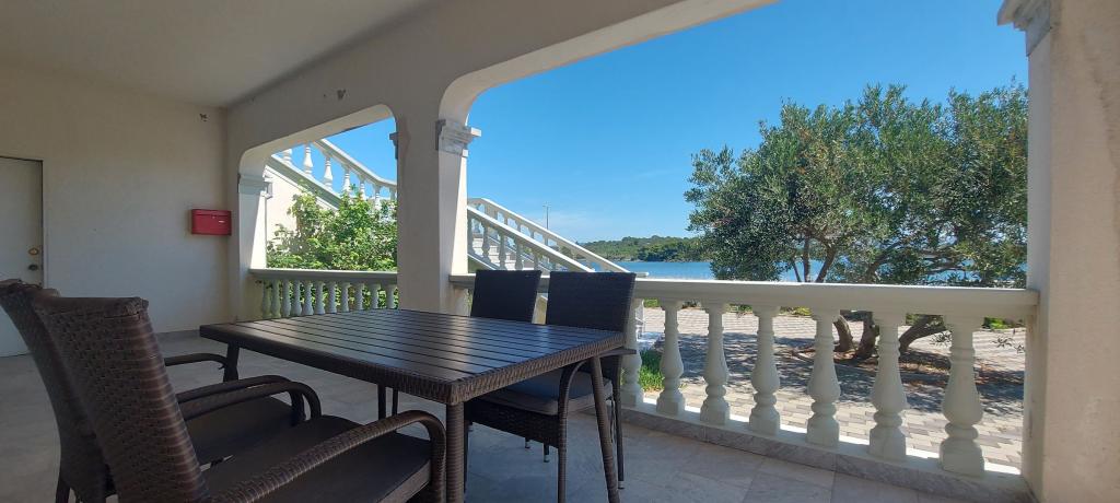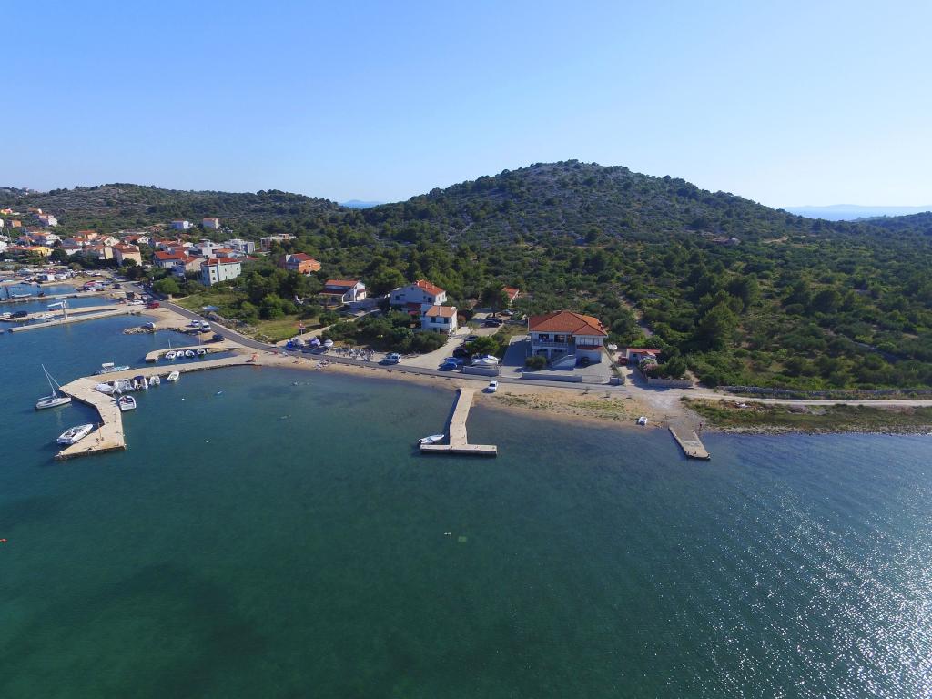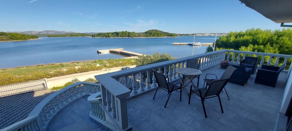 Apartments Milan are located directly by the sea. The house is located in a large olive grove at the end of the street, so the location is quiet and with little traffic. The road continues with a promenade along the sea around the island, perfect for relaxing walks and finding a secluded spot for swimming. In front of the house is a pier where you can moor your boat. On the shore, guests can enjoy swimming and sunbathing. The apartments have a view of the islets in front of Murter. The center of Murter starts about 1 km from the house, where you can find shops and restaurants.