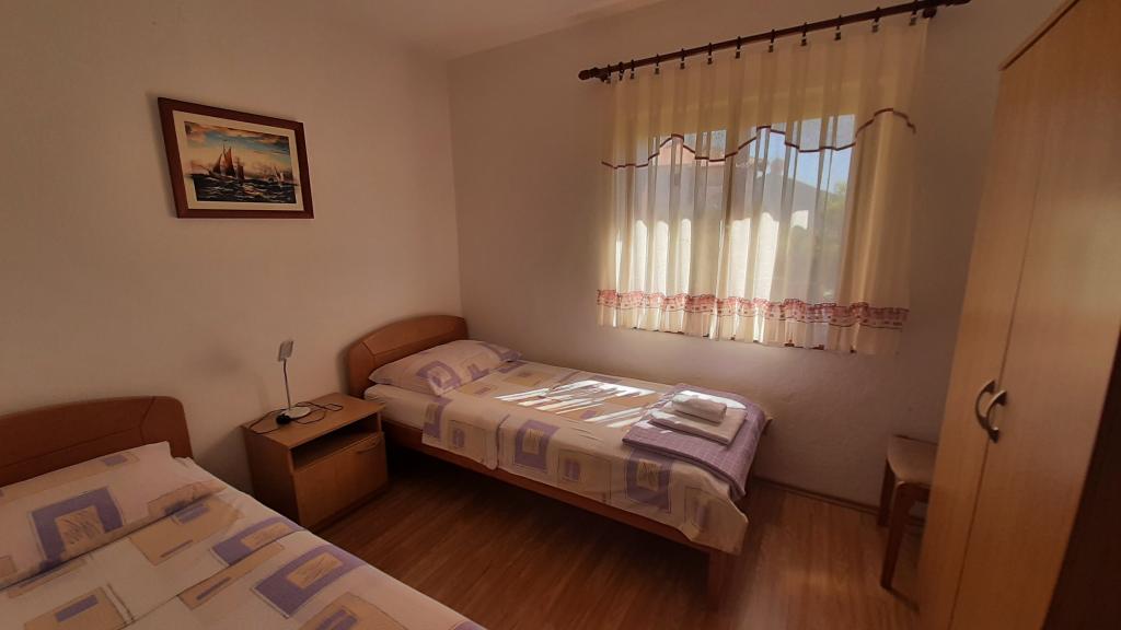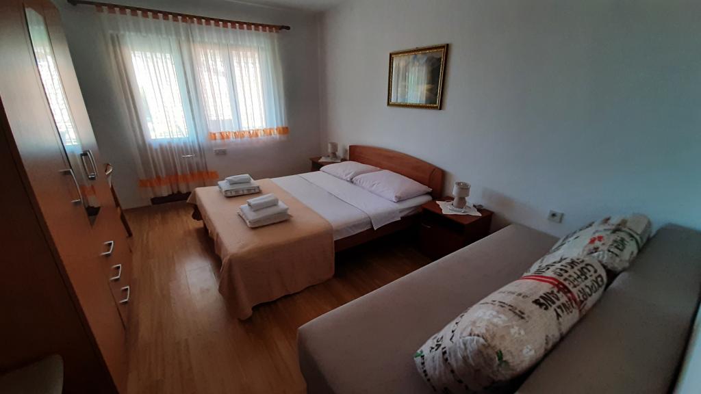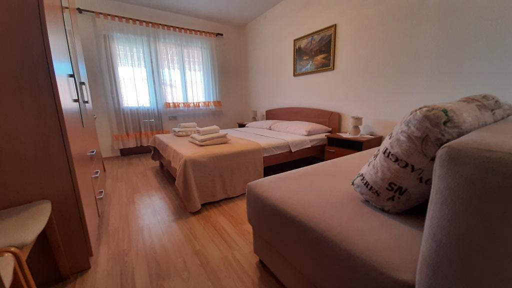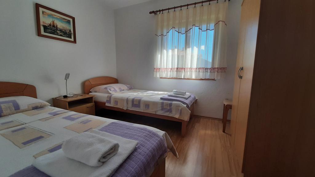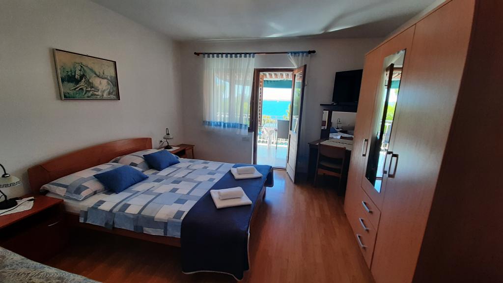 Very polite and nice owner. Clean, spacious apartment with a very large and shaded terrace overlooking the sea. Fully equipped kitchen and rooms, shaded parking spaces for cars. Beaches and konobas very close. A place worth recommending for a quiet holiday.
