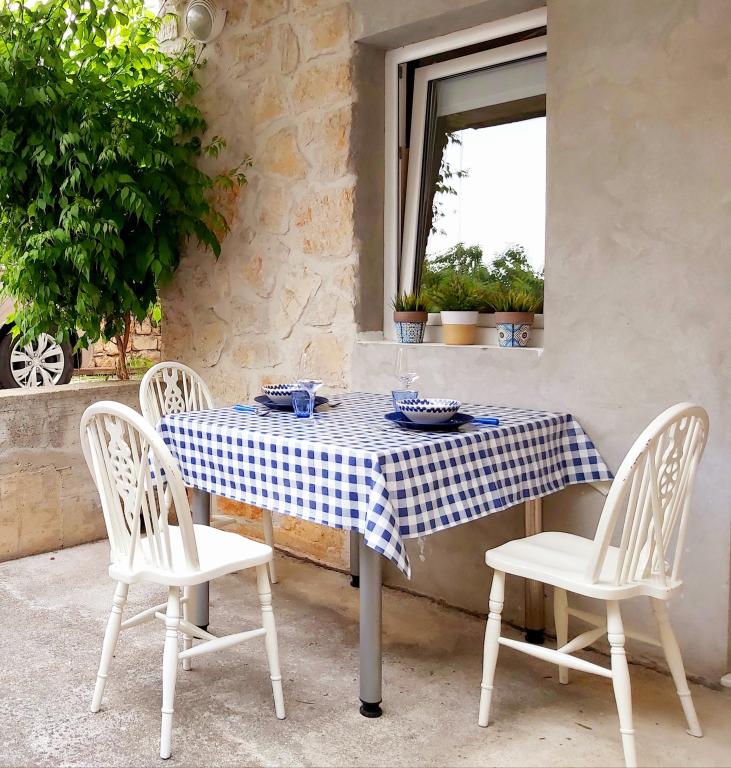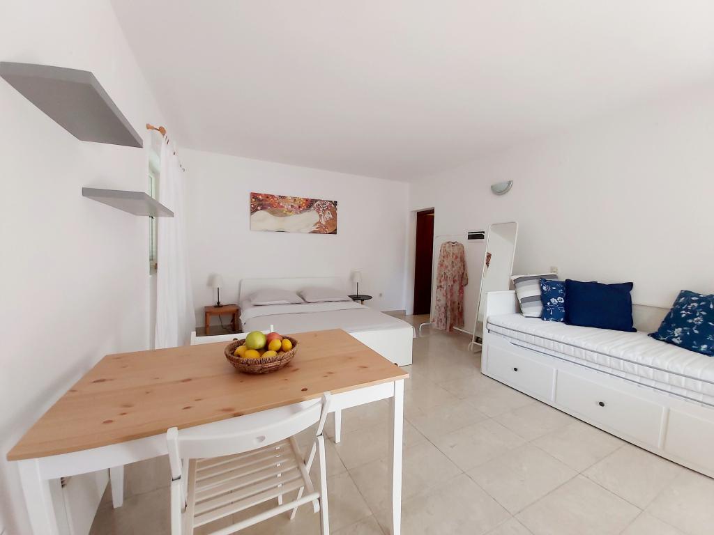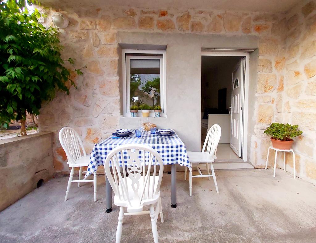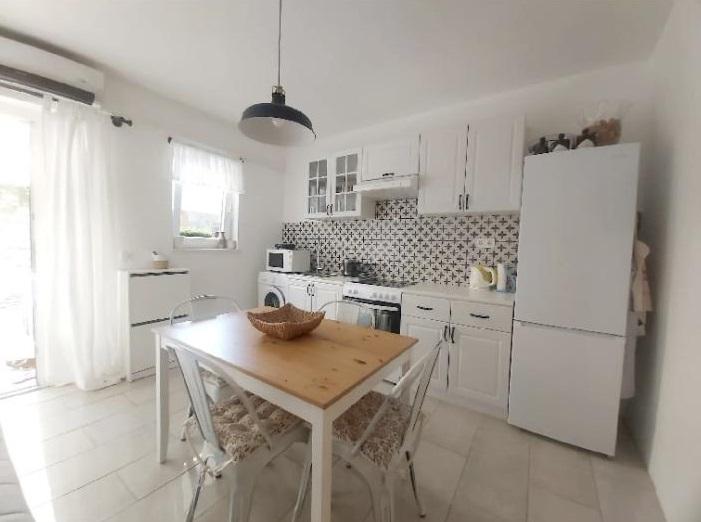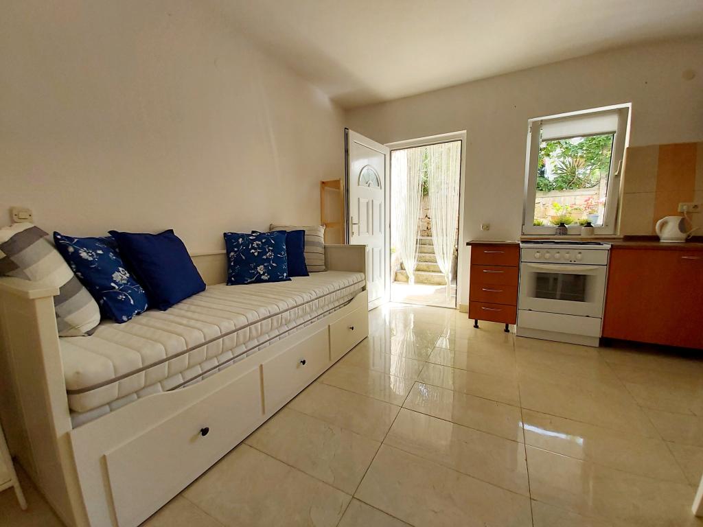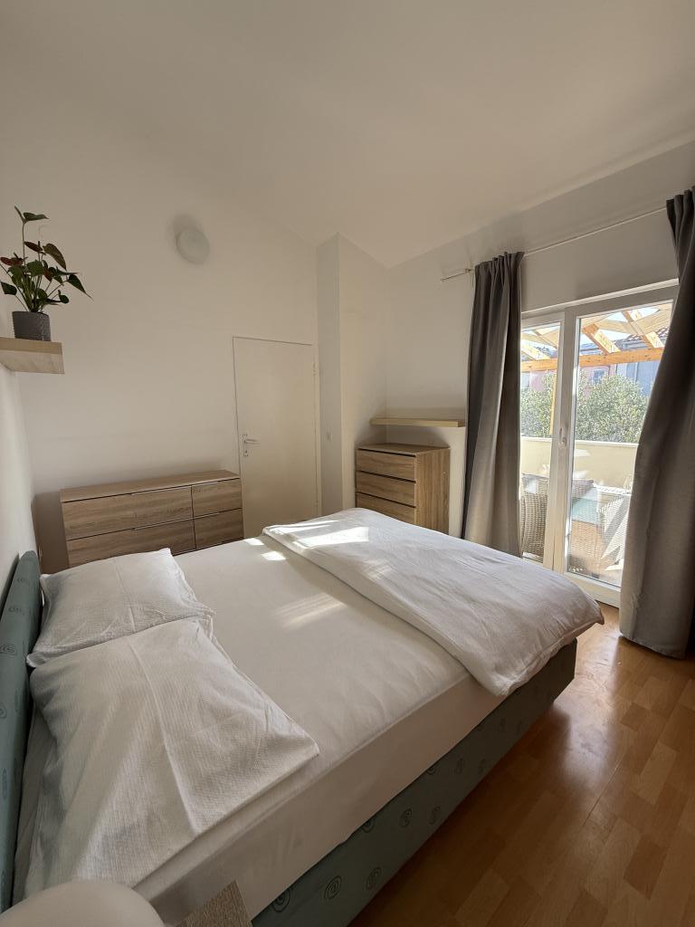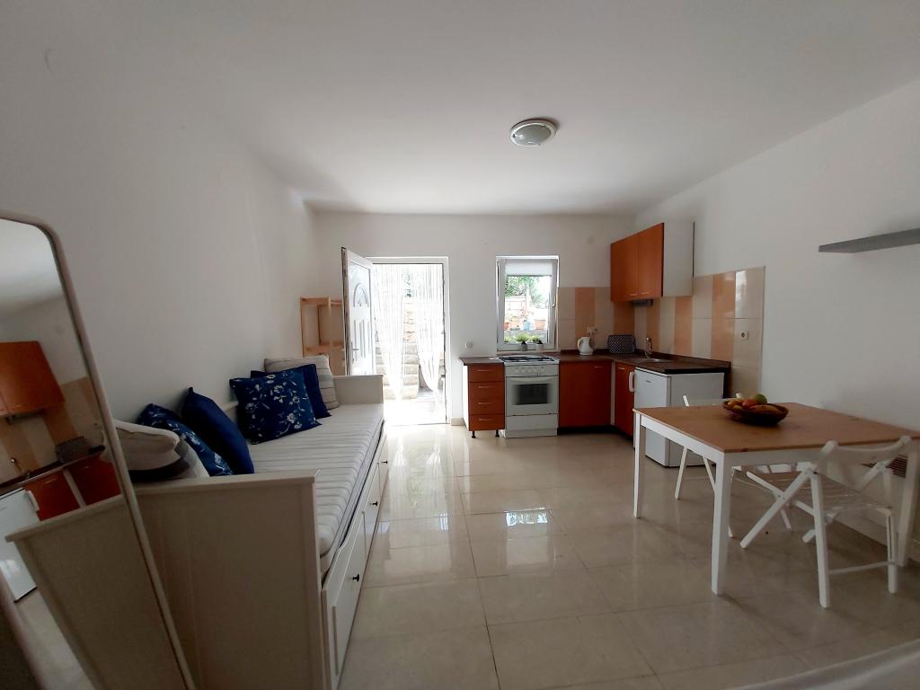 Studio apartment with a terrace of 12m2. The apartment is designed for 2 people. Large double bed, fully equipped kitchen, dining table, bathroom. Terrace and dining table. Secured parking space in front of the apartment for one vehicle. Close to the beach. The apartment is a 5-minute walk to the beach Slanica and a 7-minute walk to the center of Murter.