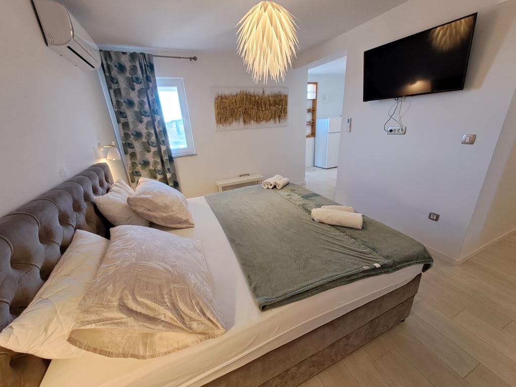 Newly furnished apartments in a quiet area, 5 minutes walk to the sandy beach "Slanica" and 10 minutes walk to the center. The apartments have a sea view.