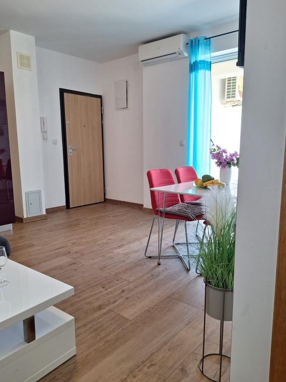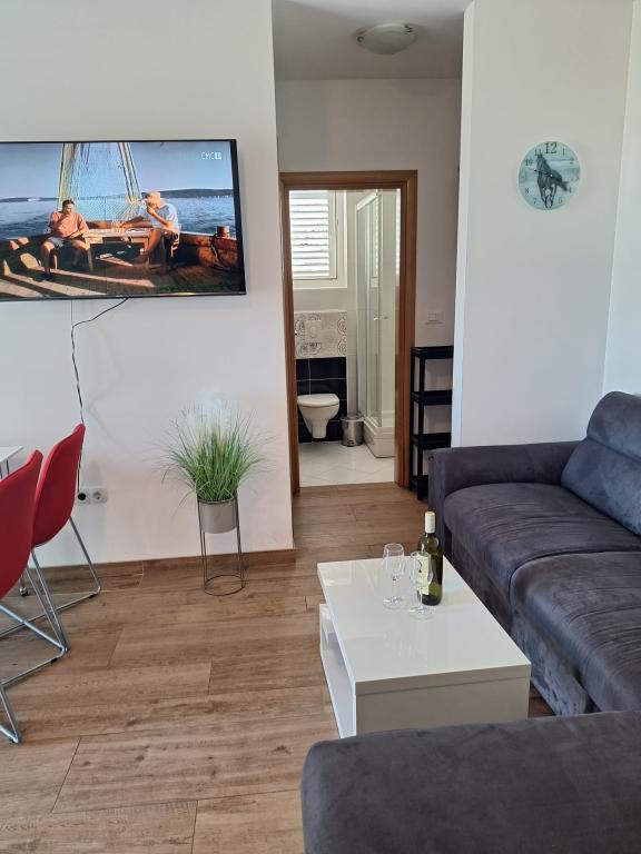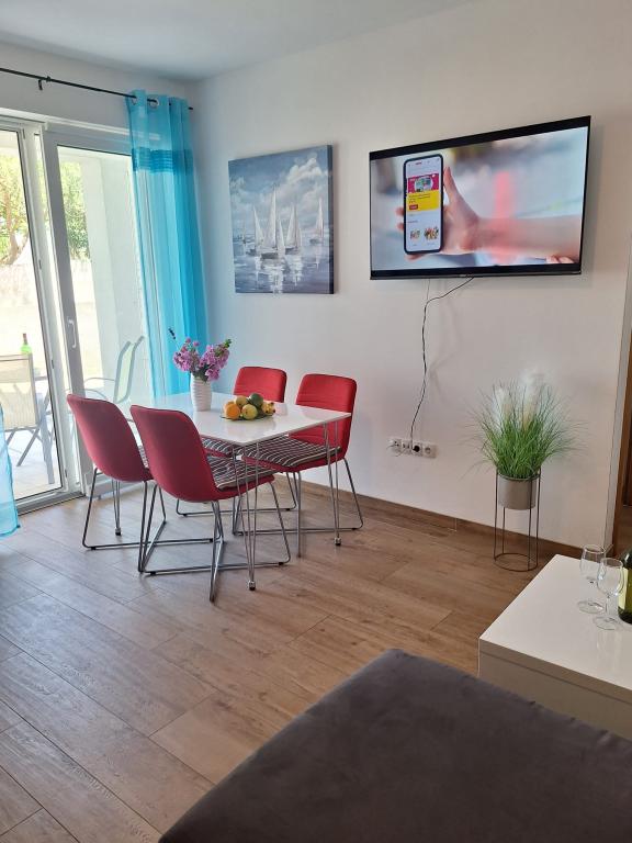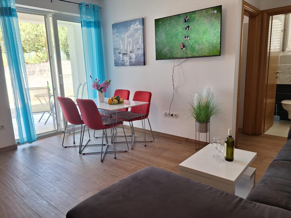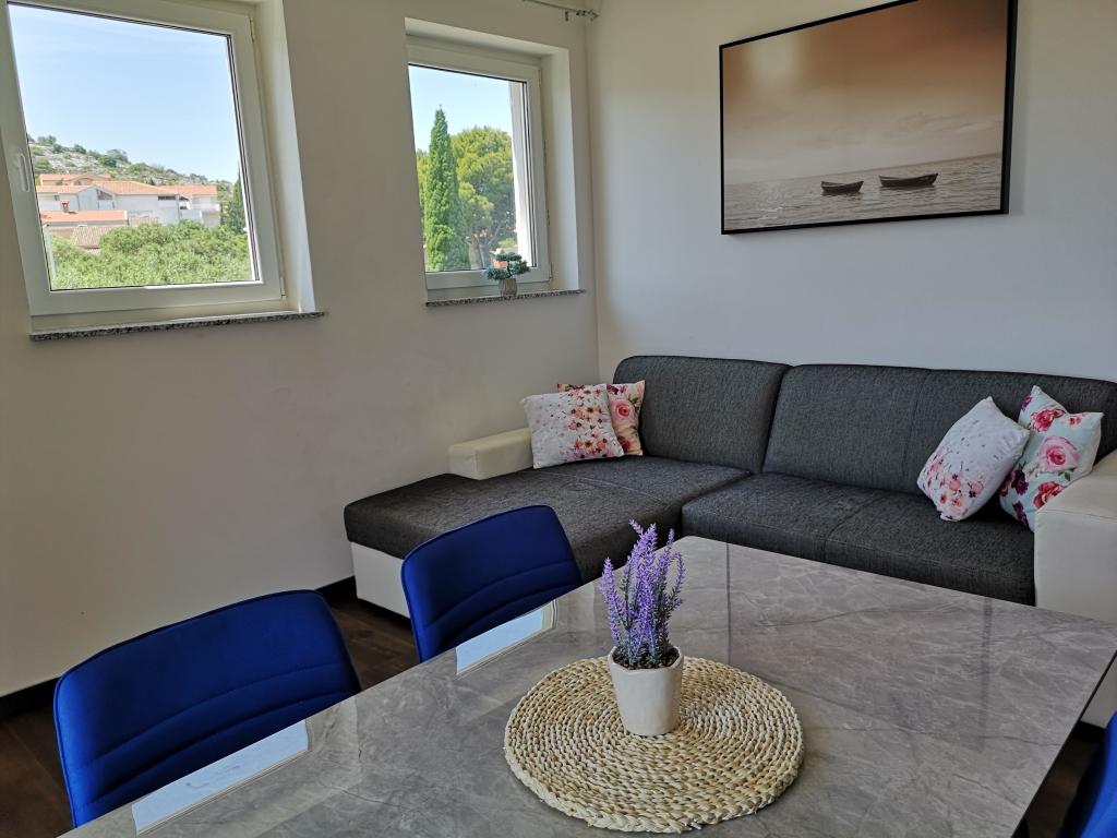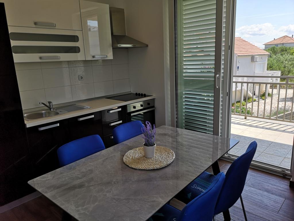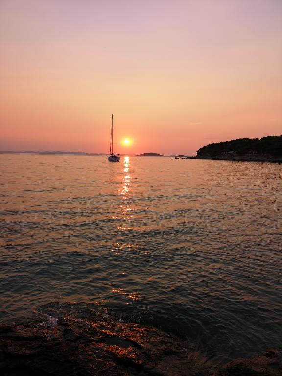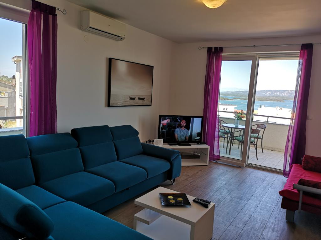 Villa Tea consists of six accommodation units. The apartments have one or two bedrooms, a bathroom, a living room with a kitchen and a dining room, and a terrace with a beautiful view of the sea. The apartments are fully equipped. Each apartment has its own parking space, free Wi-Fi and air conditioning. The nearest sandy beach Slanica is only five minutes away from the property. If, on the other hand, you like to take a walk along the path over which the pine branches hang and make your walk pleasant, about ten minutes from Slanica is the Podvrška beach with the beautiful turquoise color of the sea. There is a shop nearby, and the city center is only 15 minutes away. If you are able, our warm recommendation is to visit the national parks of Kornati and the Krka River, the canyon of the Zrmanja River, and the nature parks of Lake Vrana and Telaščica.