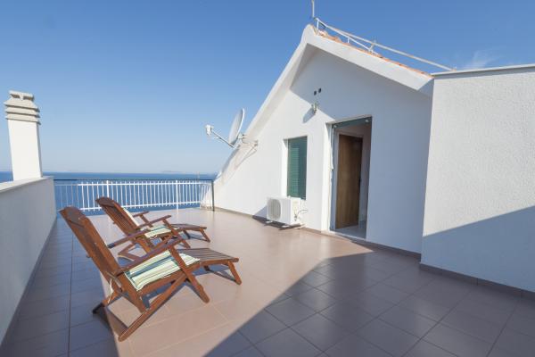 Undoubtedly, our apartments are among the best in Murter, desirable because of the beautiful view, attractive location and comfort, but also because of our open hearts and hospitality. The sound of the waves, the smell of the sea and the beautiful view of the National Park Kornati and Murter archipelago, will make your holiday beautiful and unforgettable experience for the whole family. Greenery, large house garden, peace and house just 150 meters from the sea and beaches Brine is the main reason our guests visit and come back every year. In the house are 3 apartments which are rented. One large apartment for 4 persons AP (4 1) with 2 bedrooms, living room, dining room, kitchen and bathroom, and two smaller apartments with 1 bedroom, 1 bathroom and living room with kitchen: AP 1 (2 1) and AP 2 (2 1). Each apartment has a terrace overlooking the sea.