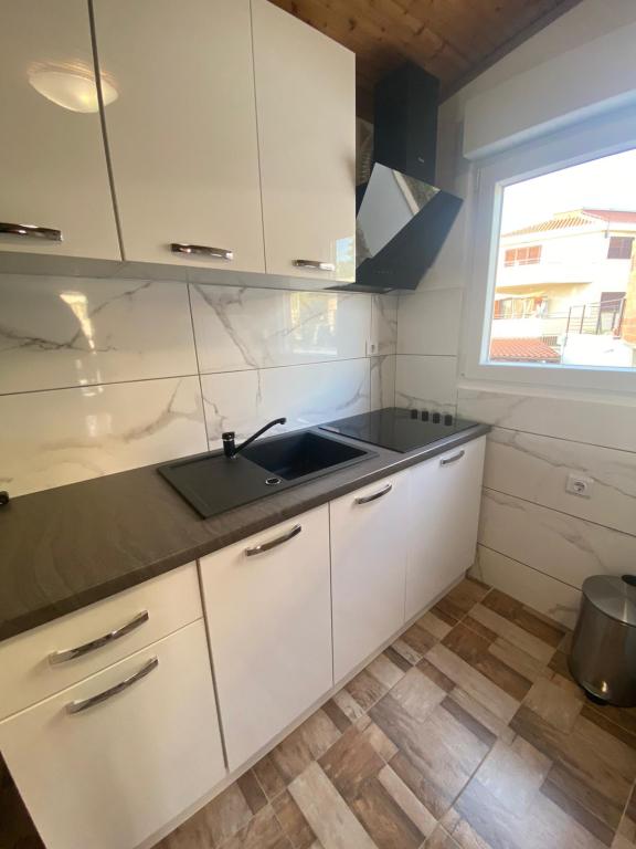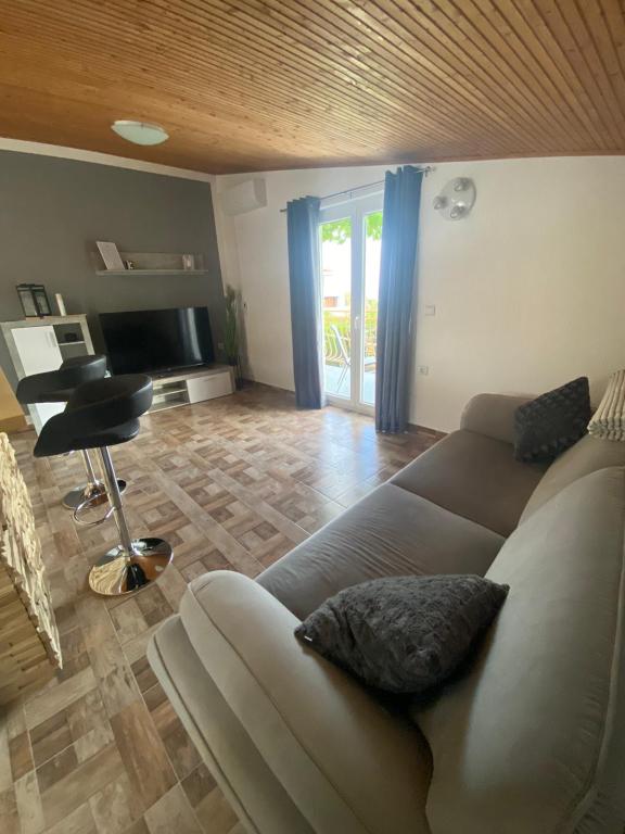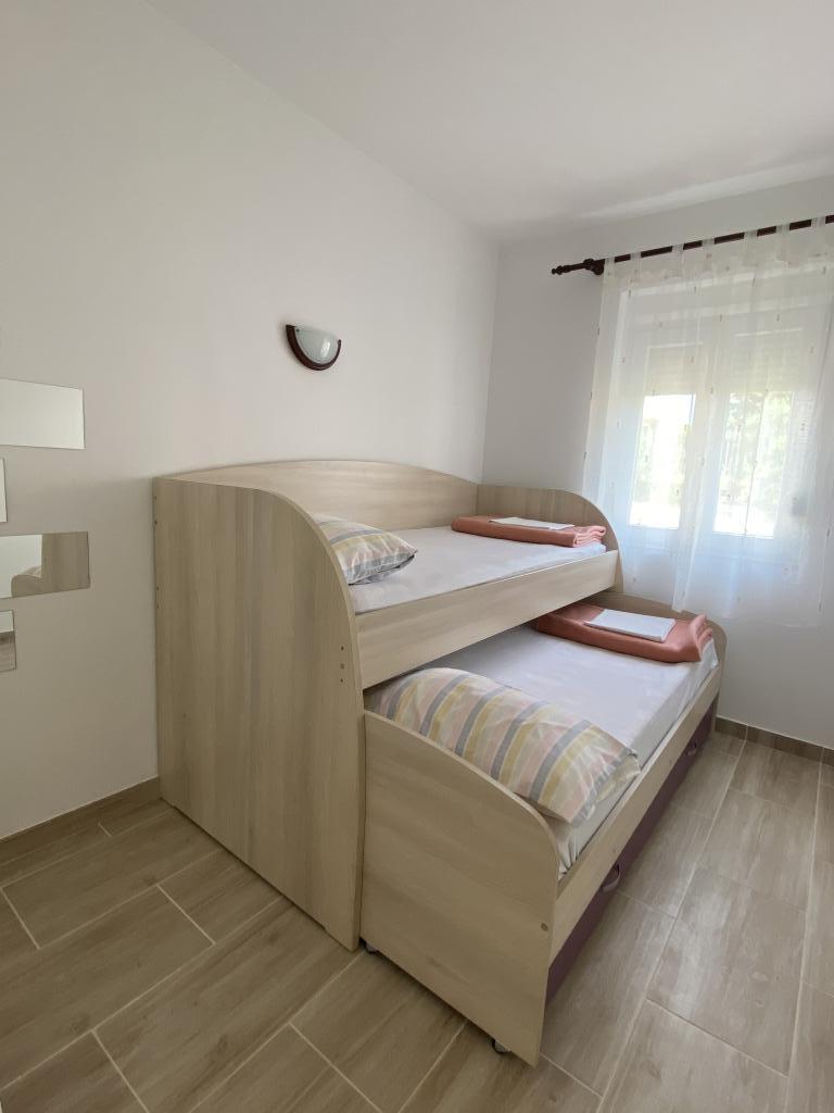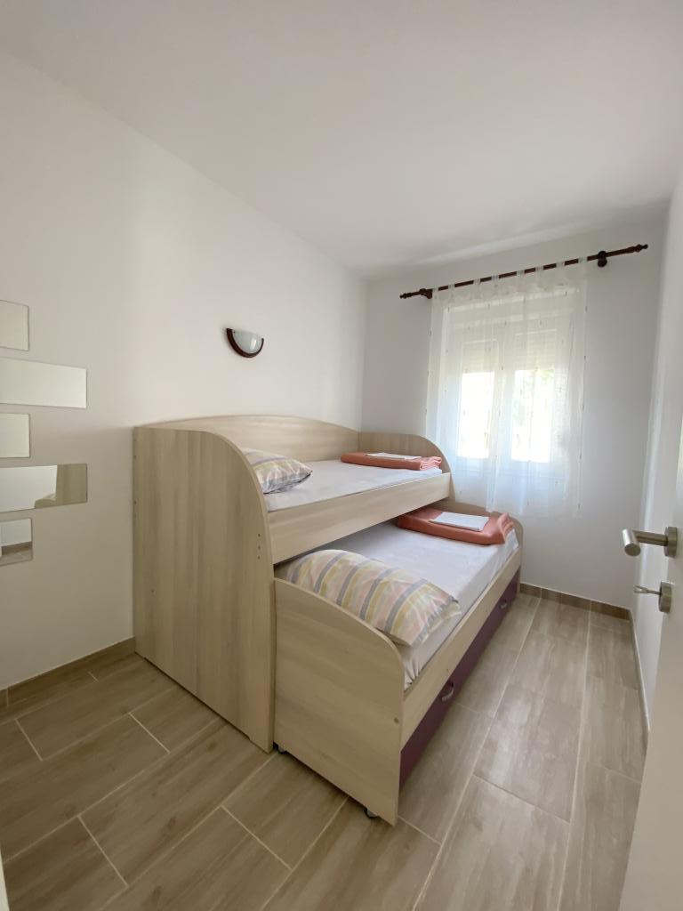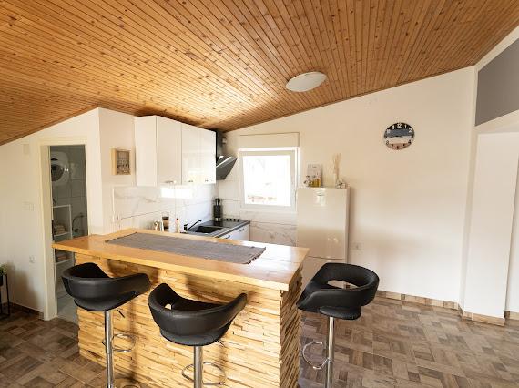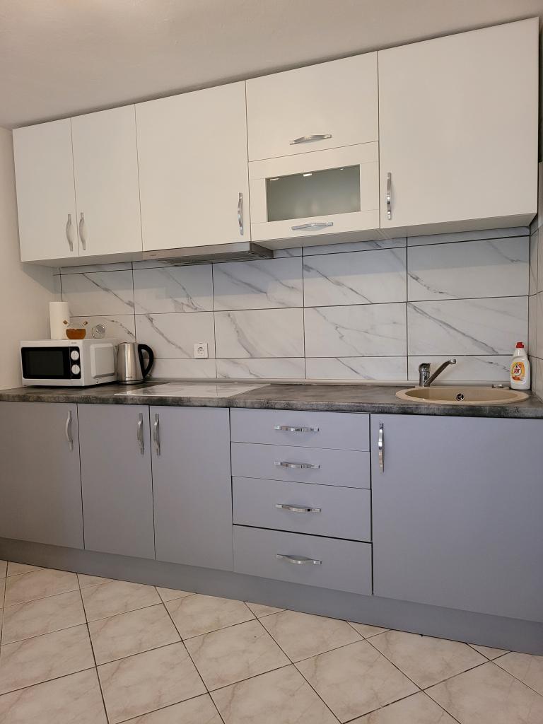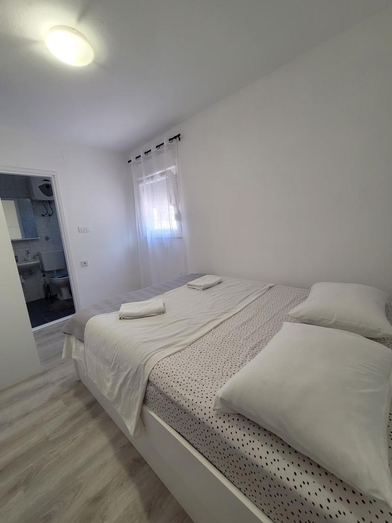 We offer comfortable apartments for up to 6 people. Each apartment has a fully equipped kitchen, bathroom, living room, bedrooms and private balcony. For apartments on the ground floor, you have a yard with a garden, barbecue, table and chairs at your disposal. The apartments are only 150 meters from one of the most beautiful beaches on the Adriatic. In the town of Murter, you can find everything you need for a pleasant vacation. In addition to many restaurants and cafes, there are a couple of supermarkets, bakeries, butchers, a market, a clinic, a pharmacy, a post office, a bank, ATMs, a gas station, a church, a cinema, a marina, diving clubs, sports fields and playgrounds for children. You can rent a boat, scooter, moped or bicycle. Boat trips to the Kornati National Park are also offered, and the Krka National Park is also nearby. We also recommend several viewpoints from which you can enjoy a beautiful view of the place, the surrounding islands and Kornati. The apartments are located at the very entrance to Murter. They are located between the beach "Čigrađa", the hill "Raduč"
