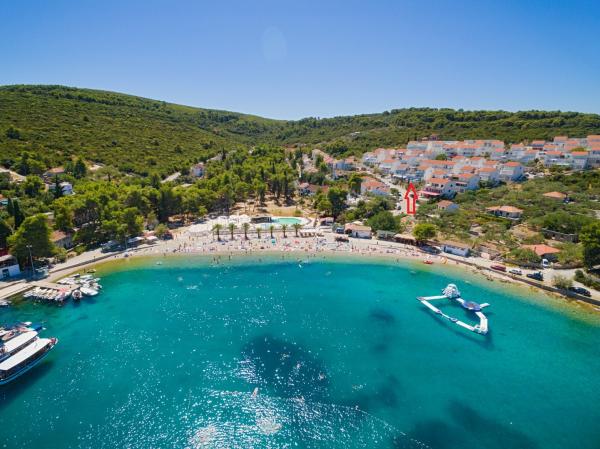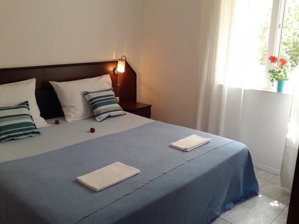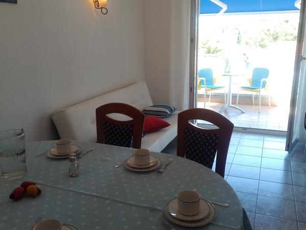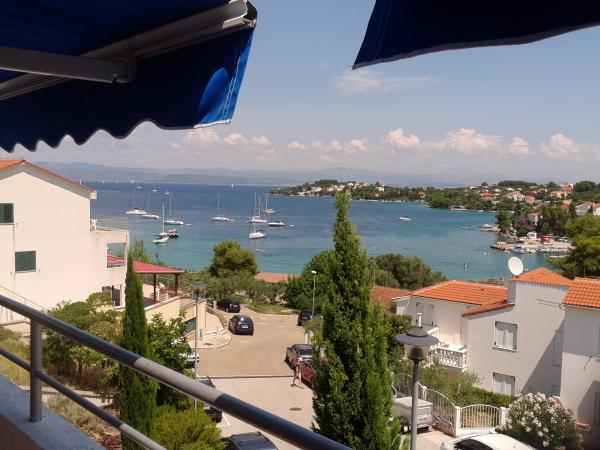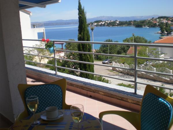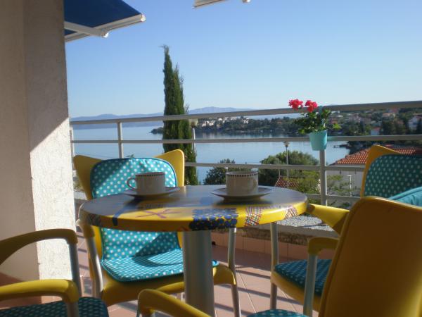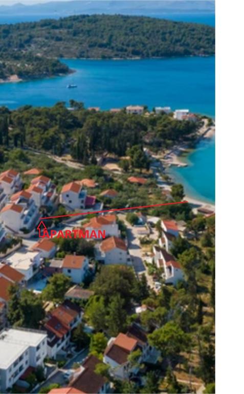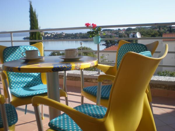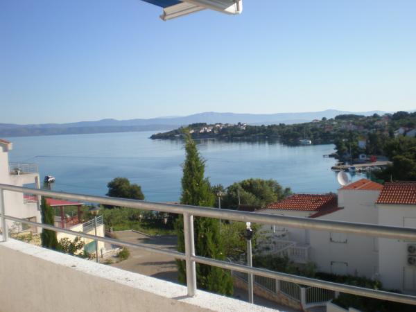 Fully and modernly equipped apartment in the immediate vicinity of the pebble beach. The facility is located a 2-minute walk from the beach and the town center. It consists of an entrance hall, two bedrooms, a bathroom, a living room with a kitchen and a large balcony. From the balcony there is a view of the beach, the pine forest, the bay and in the distance the island of Čiovo and the city of Split. In the larger bedroom, there are beds for three people: a large bed for two people and a bed for one person. The smaller room is equipped with one bed for two people whose orientation allows the guest to wake up with a view of the sea from the bed. The kitchen is equipped with all necessary household appliances: refrigerator, oven, stove, dishwasher, washing machine, kettle, and other kitchen utensils. Electric and charcoal grills are available to guests. In the living room there is a large kitchen table, sofa and television. There is a public parking lot next to the apartment, which is free of charge, but reservation is not possible.