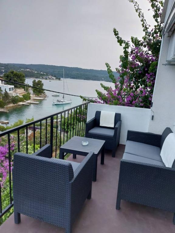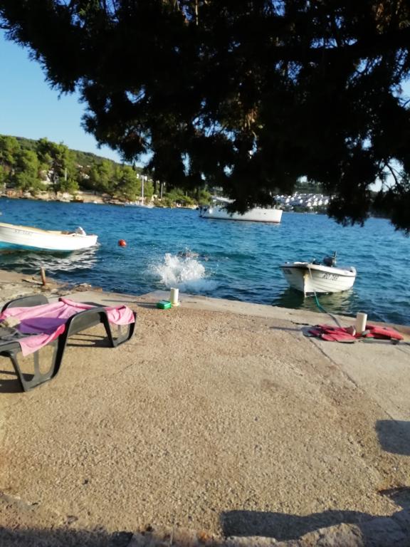 We stayed in the Éva apartment for the second time, and once again we felt excellent. (5 people, 2 dogs, 11 days) This year we chose the upper / smaller apartment. It is also pleasant, spacious and well equipped, like the larger apartment. The view from the balcony to the sea is beautiful. Although there is no washing machine in the bathroom here, Terezija, the landlady, did the washing for us. He fulfilled all our requests, he is always very kind ... We only found out this year that his brother Dino has an olive grove on the island. We managed to get great olive oil from him, thank you! The sea is really very close with its own pier. We could use Éva -Terezija's daughter- Sup. If you go on vacation with your own Sup, it is not necessary to constantly bring it back and forth between the apartment and the jetty, because it can be moored there. It is ideal for families, but I also recommend it to vacationers who don't like crowds of tourists, enjoy hiking in nature, and find it exciting to explore beautiful bays on the island on foot.