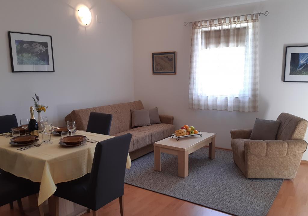 Apartments Bešlagić are modern apartments located in a quiet village Nerezine. The facility is located in a cul-de-sac 100m from the center and 300m from the sea and beaches. The apartments are fully equipped, decorated and air conditioned. Apartment (A6) has a separate entrance. It consists of three bedrooms, hallway, new kitchen with dining area, bathroom and living room. The apartment has an equipped kitchen with dishwasher, microwave, oven, kettle, refrigerator with freezer, coffee maker and other necessary kitchen utensils. In front of the apartment there is an outdoor terrace with table and chairs with the possibility of using the barbecue. The apartment (A4) consists of two bedrooms, hallway, new kitchen with dining area, bathroom and living room. The apartment has an outdoor terrace overlooking the sea. Guests have free access to Wifi internet, TV and parking space. Clean linen and towels are available.