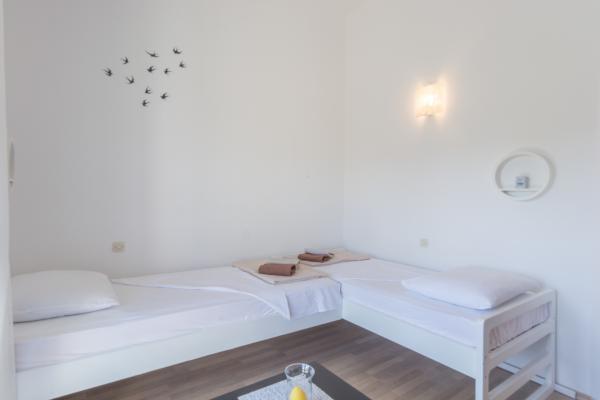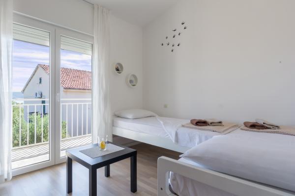 APARTMENT PAŠMAN - YOUR IDEAL HOLIDAY IN THE 2026 SEASON Welcome to Neviđane, the island of Pašman - one of those rare places where peace, clear sea and authentic Mediterranean atmosphere are still lived every day. The perfect destination for families, couples and friends looking for relaxation, safety and quality accommodation, far from mass tourism. Our modernly equipped apartment is located only 50 meters from the sea, next to sandy and pebble beaches ideal for children, and carefree enjoyment for adults. The accommodation includes 2 bedrooms, a large living room with an extra bed, a fully equipped kitchen, a bathroom, a terrace and a balcony and private parking. If there are up to 6 people, the price includes a third bedroom with its own bathroom (ensuite) and a terrace. Pets are welcome at no additional charge. The ferry port is only 10 km away, excellent connections and a peaceful environment. Pašman - simplicity, peace and the feeling of having arrived home.