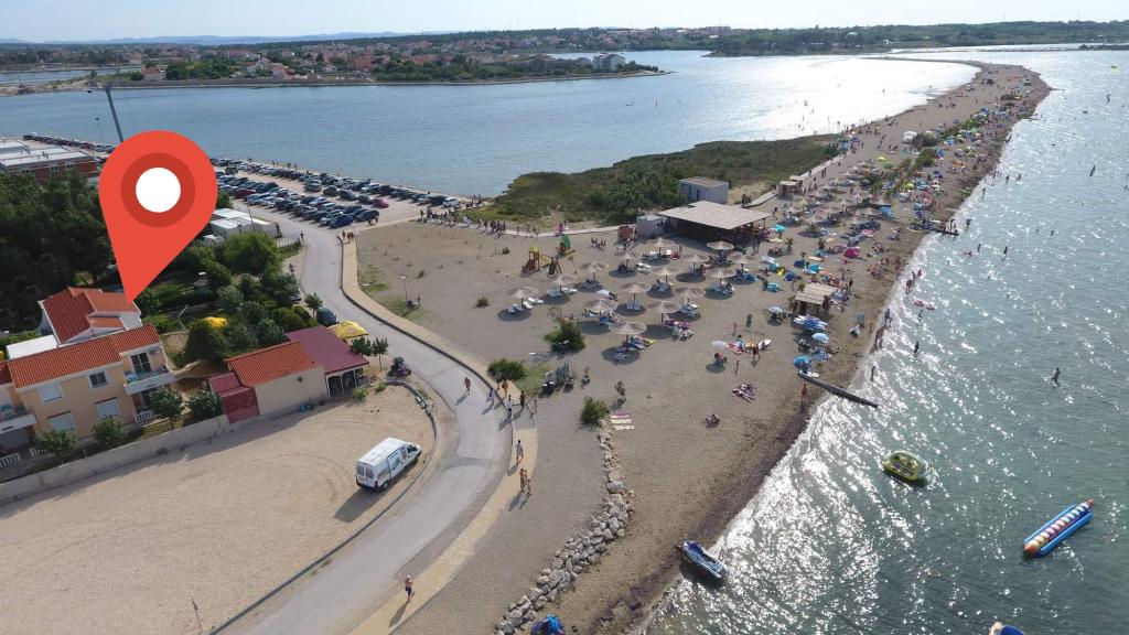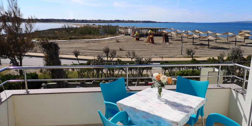 Family friendly apartments which are the nearest apartments to the longest sandy beach in Croatia! Each apartment has private kitchen, private bath room, living room, bedroom and private balcony. One large bed in bedroom, plus a sofa couch which opens into a bed in the living room. Air condition (or heating) is available in all apartments for free. We offer one free parking space for each apartment. Outdoor rustic wood burning bbq barbeque grill. We also have a caffe bar with direct view onto beach, with coffee, beer, wine, mix drinks, and fast foods. Our beach is famous for family with young children, as well as kitesurfing, windsurfing, and other wind water sports. We also offer : -- FREE WiFi WLan -- FREE usage of adult and child kayaks. -- FREE usage of wood or gas grill. -- FREE outdoor shower. -- In season, you will receive free grapes and figs. -- Also available, HOMEMADE Wine, Rakija Schnapps, Cured meats. We look forward to hosting your family and friends at our beach :-)
