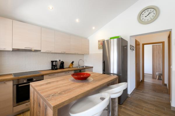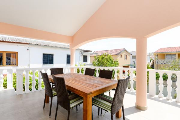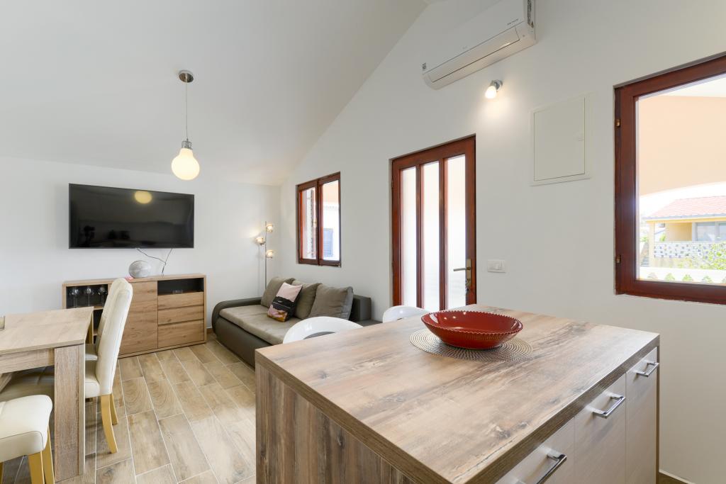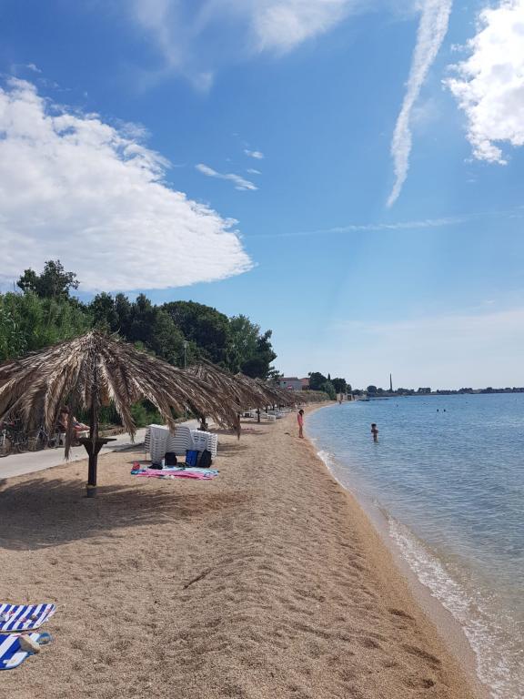 Apartment Ruža is fully and modernly equipped and is located only 30m from the sea, with a sea view. A large fenced yard, spacious terraces and proximity to the sea make this place ideal for a family vacation, especially with children, but also for everyone else who wants a peaceful vacation. We have our own buoy (mooring in the sea) if you have a speedboat or a boat up to 7 meters long just below the cottage. For those who still want fun, Nin is only 2 km away, the island of Vir 15 km, Zadar 20 km. The apartment is located on the 1st floor with a total area of 50 m2 with a terrace of 23 m2. Modernly equipped (dishwasher, washing machine, air conditioner, coffee machine), TV, SAT, Internet. You have parking in the garden of the apartment surrounded by a fence and a brick grill.