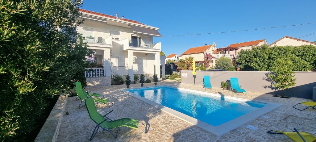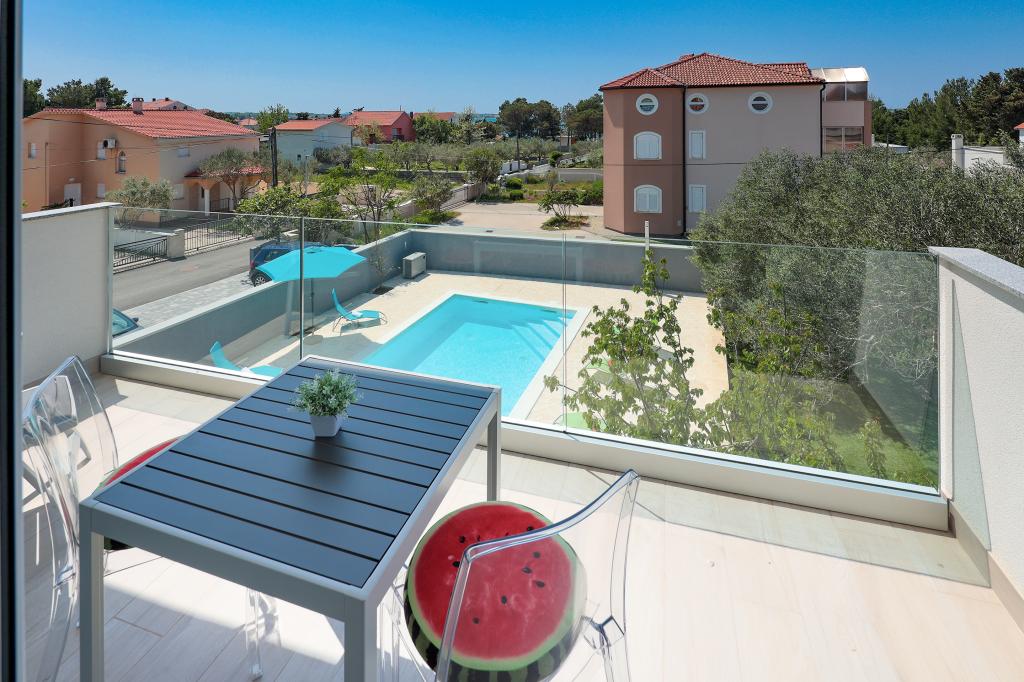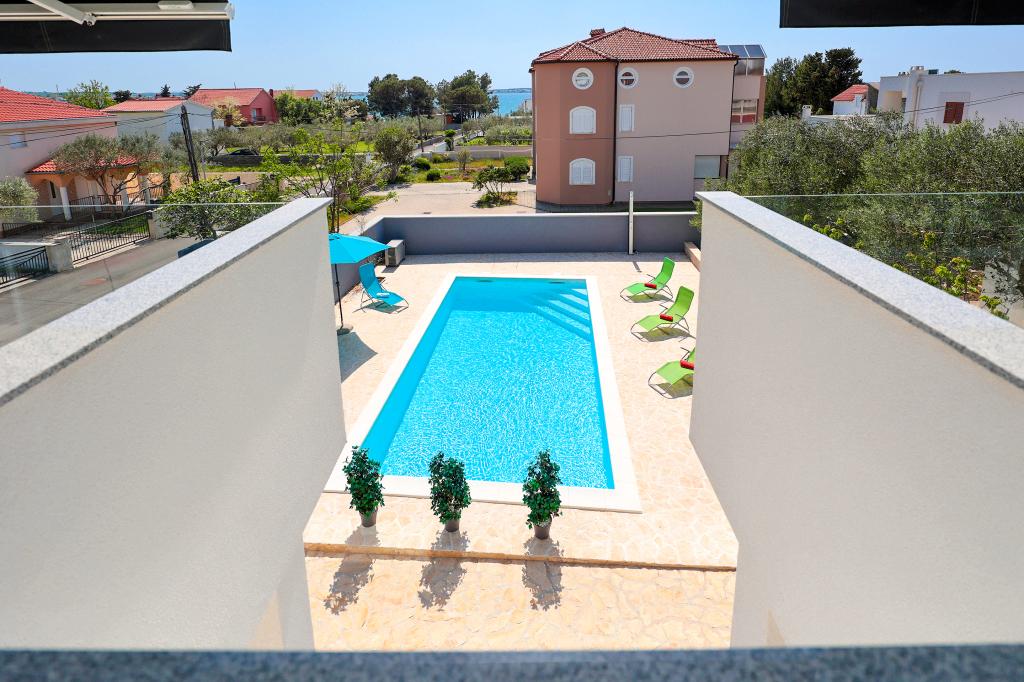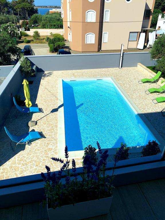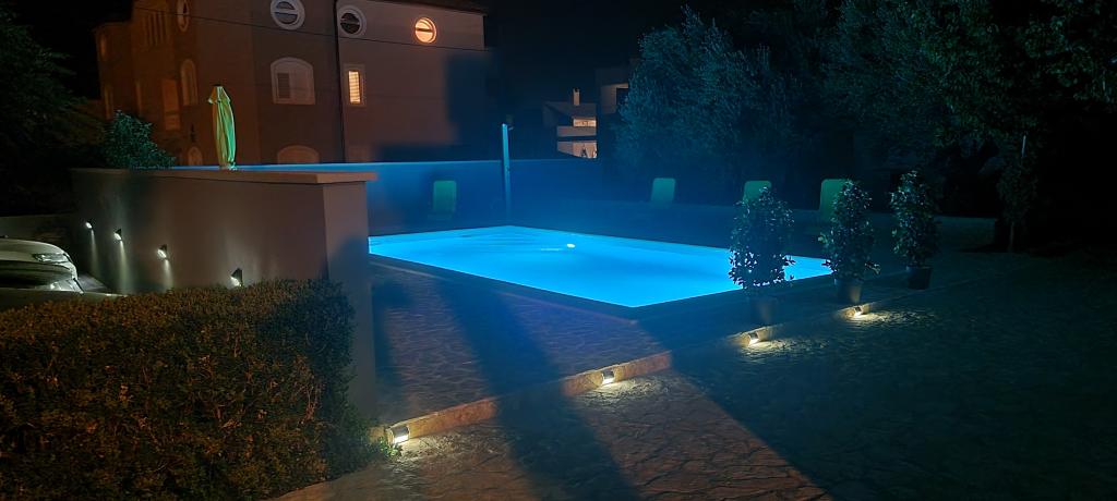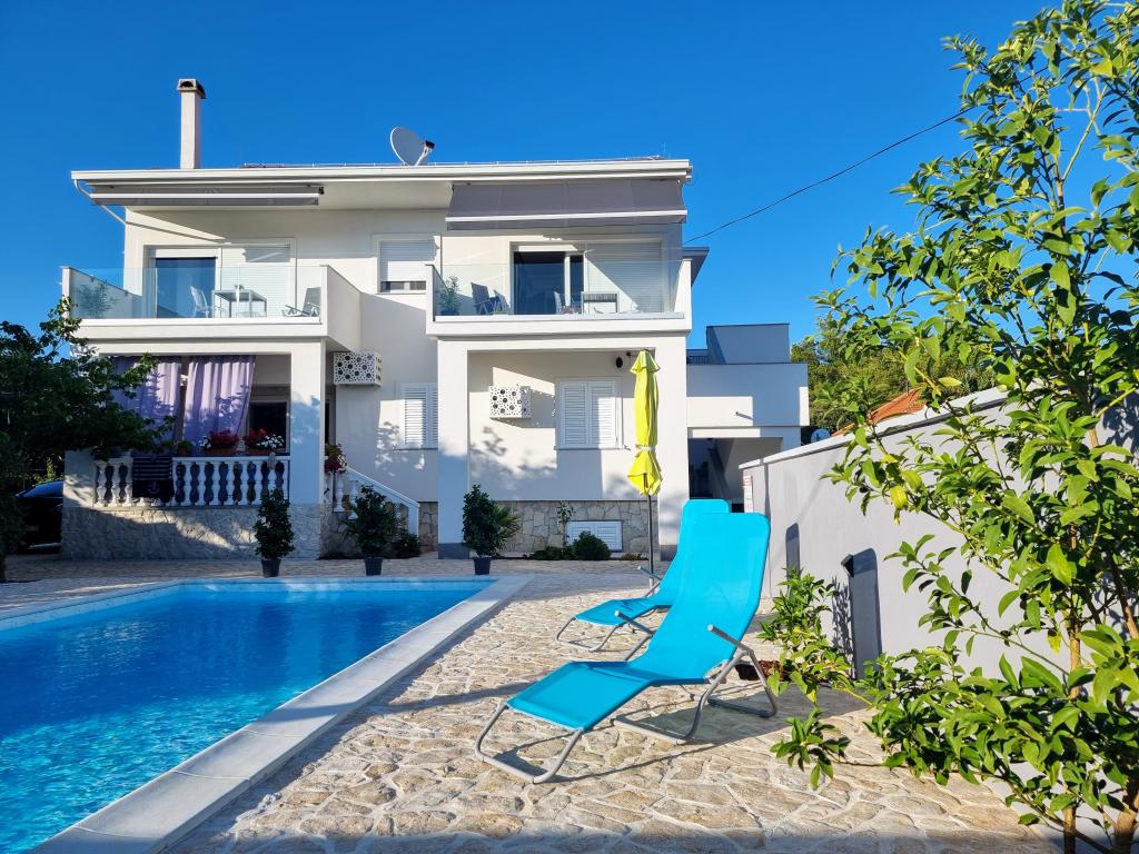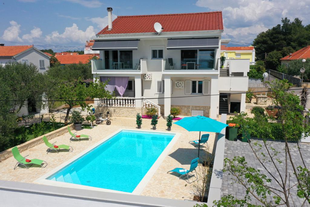 Our house is located in a very beautiful and very quiet area in the picturesque town of Vrsi. Beautiful landscape, beautiful nature, interesting culture and healthy climate are the characteristics that set us apart from other places. The main beach is very close to our house and can be reached by a short walk (80 meters or 2 minutes walk). The house has two modern apartments built in 2019. The larger apartment "Alan 3" has 4 stars and is ideal for large families up to 6 people, while the smaller apartment "Alan 2" with 3 stars is intended for families with up to two children or can become a romantic haven for couples in love. Each apartment has a balcony overlooking the beautiful bay and a large heated pool surrounded on one side by a beautifully landscaped garden with flowers and citrus fruits, and on the other by a small olive grove that provides pleasant shade on hot summer days. The terrace with seating provides relaxing moments during the day or summer evenings.
