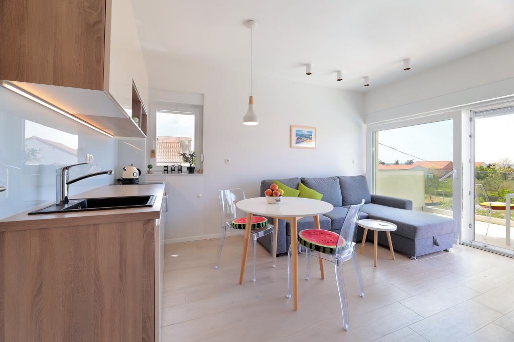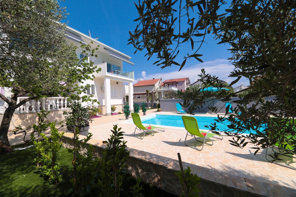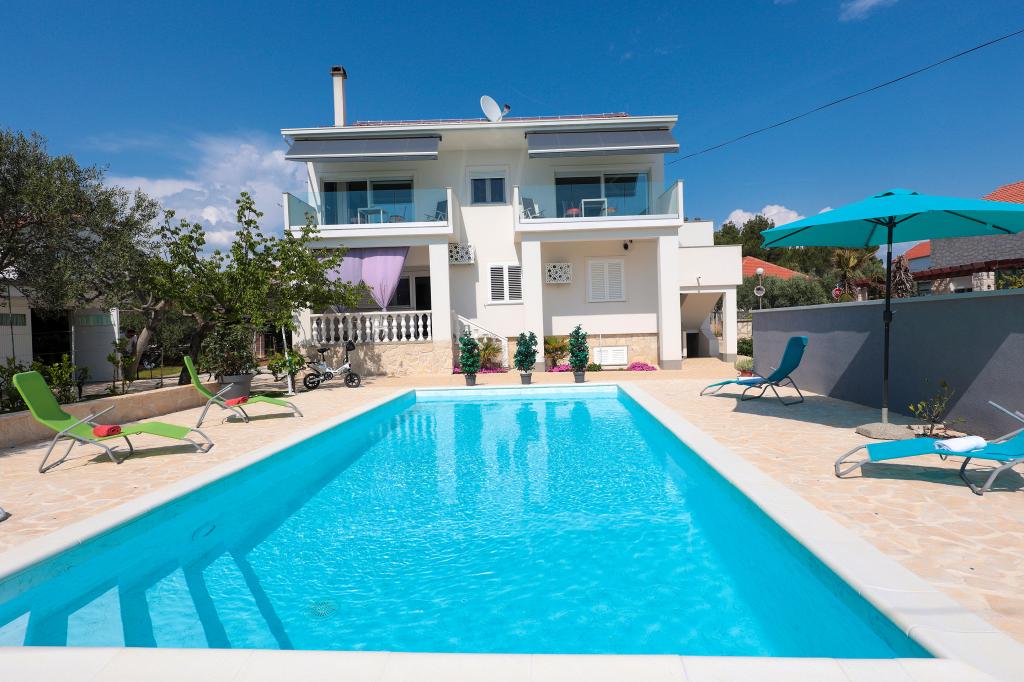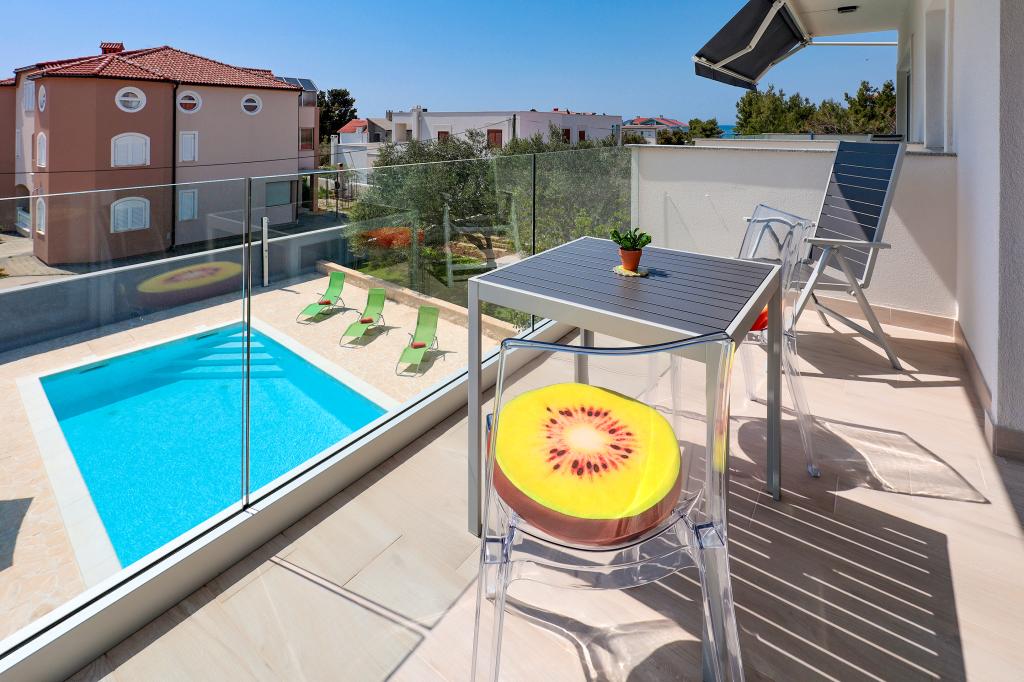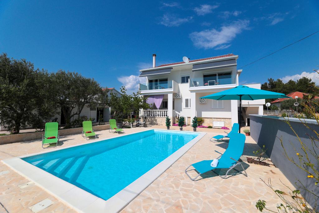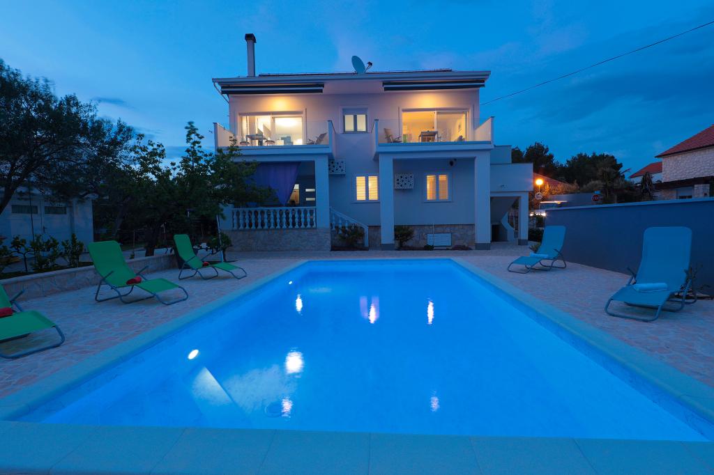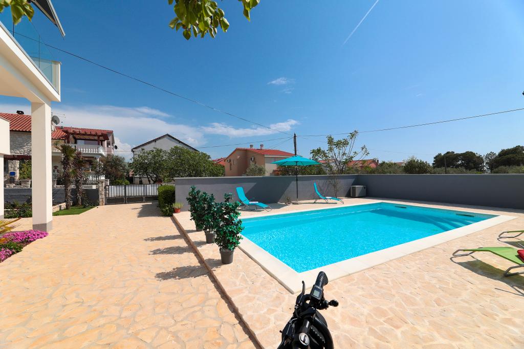 Our house is located in a very beautiful and very quiet area in the picturesque town of Vrsi. Beautiful landscape, beautiful nature, interesting culture and healthy climate are the characteristics that set us apart from other places. The main beach is very close to our house and can be reached by a short walk (80 meters or 2 minutes walk). The house has two modern apartments built in 2019. The larger apartment "Alan 3" has 4 stars and is ideal for large families up to 6 people, while the smaller apartment "Alan 2" with 3 stars is intended for families with up to two children or can become a romantic haven for couples in love. Each apartment has a balcony overlooking the beautiful bay and a large heated pool surrounded on one side by a beautifully landscaped garden with flowers and citrus fruits, and on the other by a small olive grove that provides pleasant shade on hot summer days. The terrace with seating provides relaxing moments during the day or summer evenings.