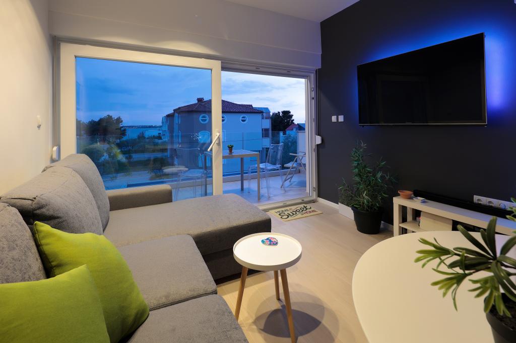 The apartments are luxuriously equipped with inverter Mitsubishi air conditioners in each room, large diagonal TV with all European satellite programs, Netflix, modern kitchen with induction hob, bathroom with shower, large modern balcony awning that rises and falls, and large apartment "Alan 3" has a desk with a 4K monitor large diagonal. You can also rent electric bicycles with a range of over 60 km on a single battery charge.