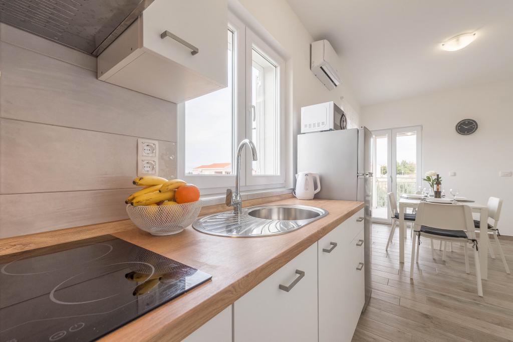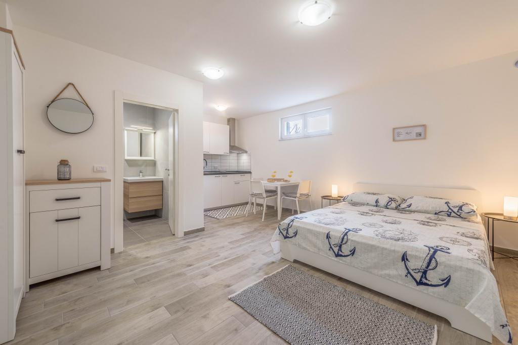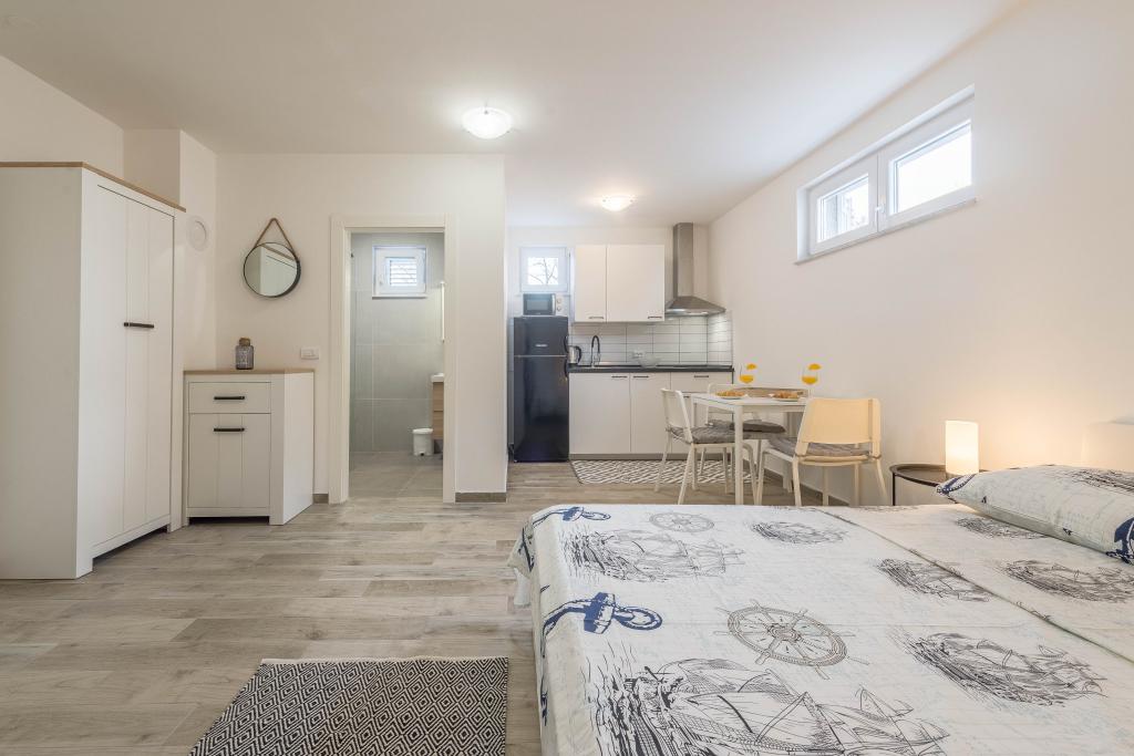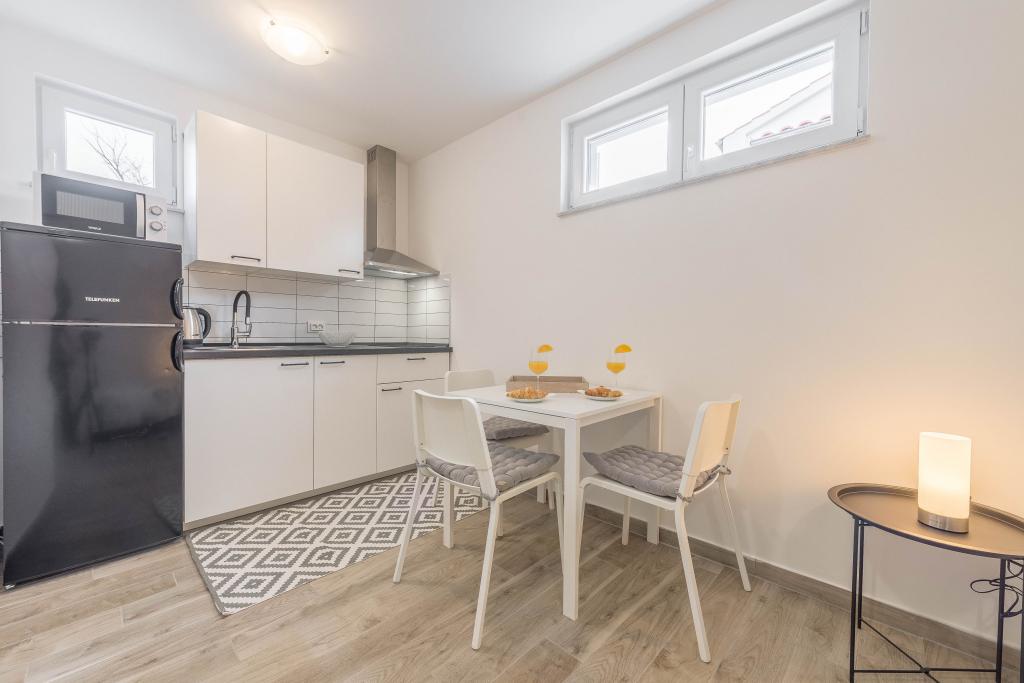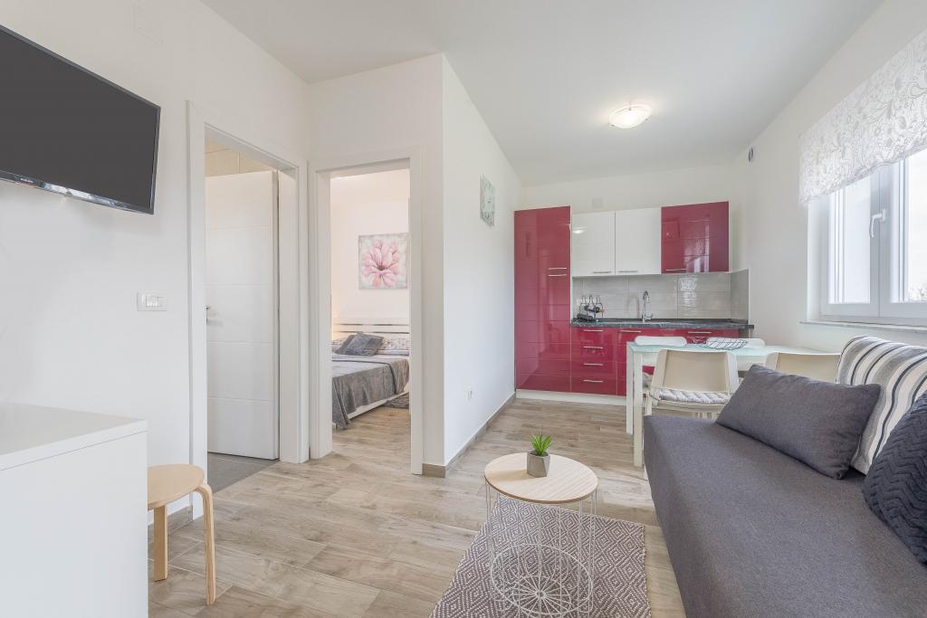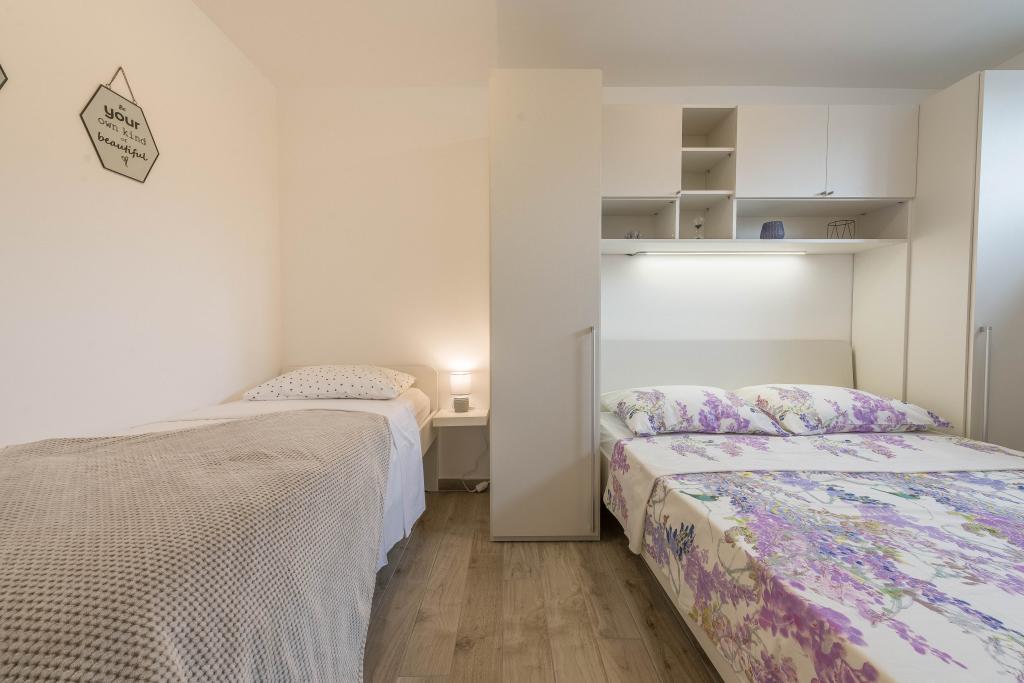 The apartments are very nicely decorated, everything is new and clean, and the owner is extremely kind and accommodating. The nearest beach with a long promenade is 5 minutes away. walk, and at a distance of 10 min. by car, there is also a beautiful sandy beach, ideal for families with children.